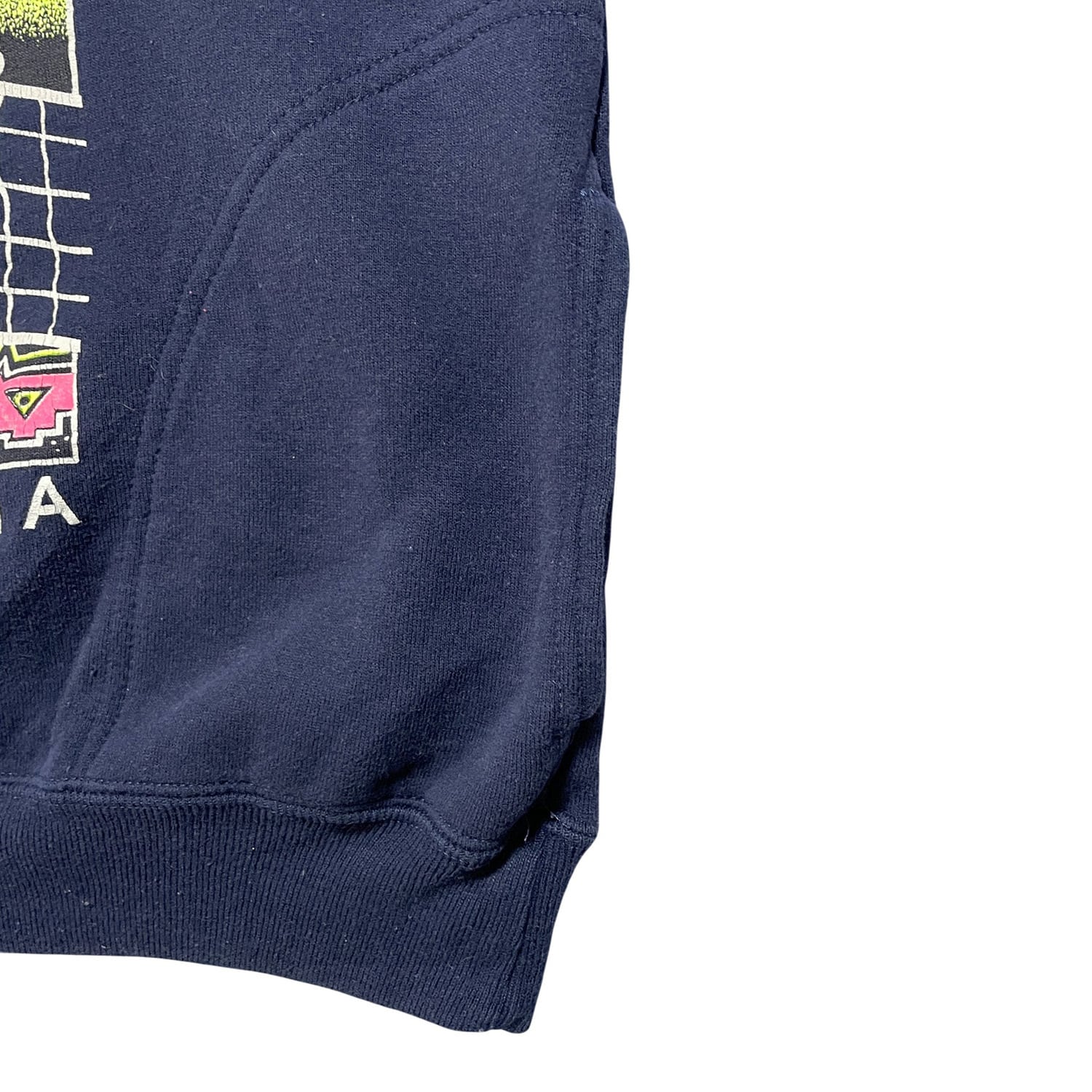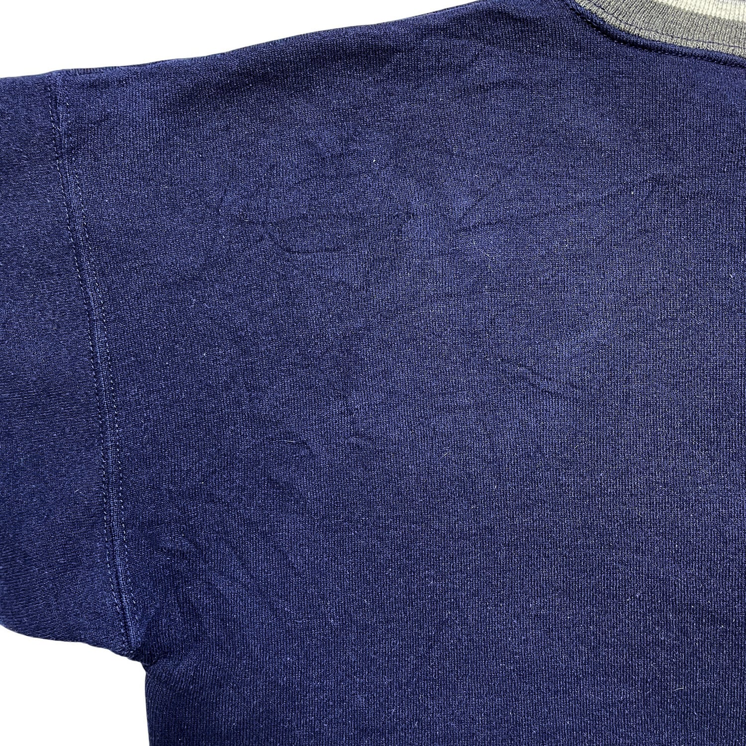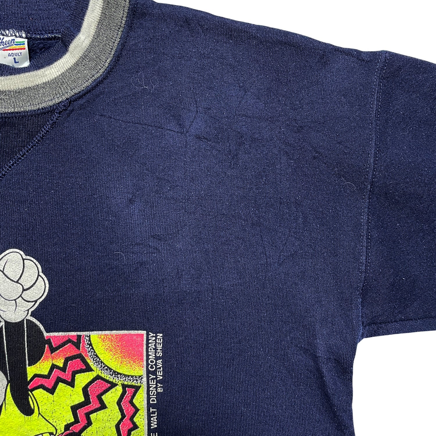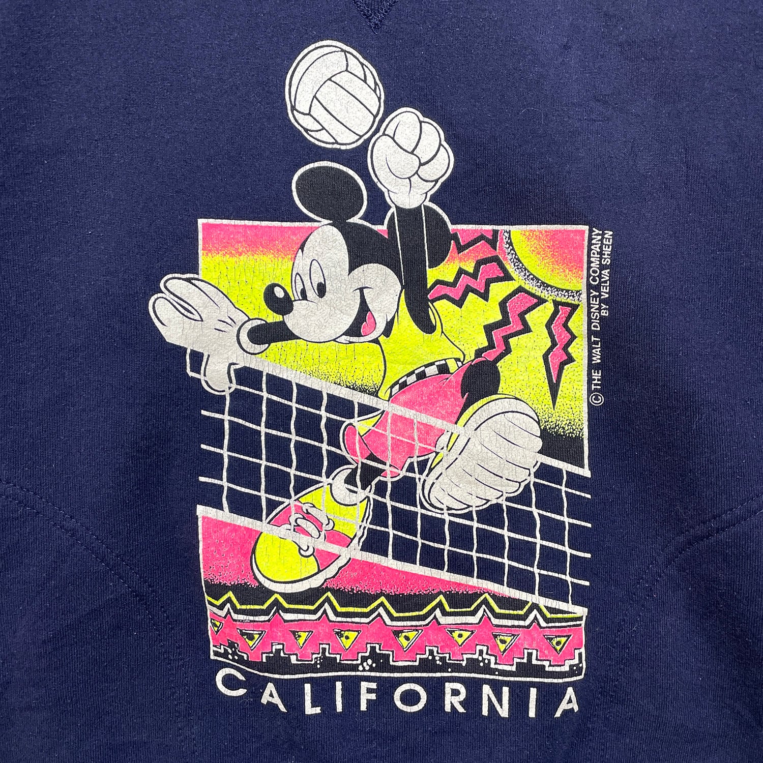 古着 USA製 90S Disney ディズニー ミッキーマウス ヴィンテージ クルーネック 前V スウェット トレーナー プリント ネイビー メンズL BD2973