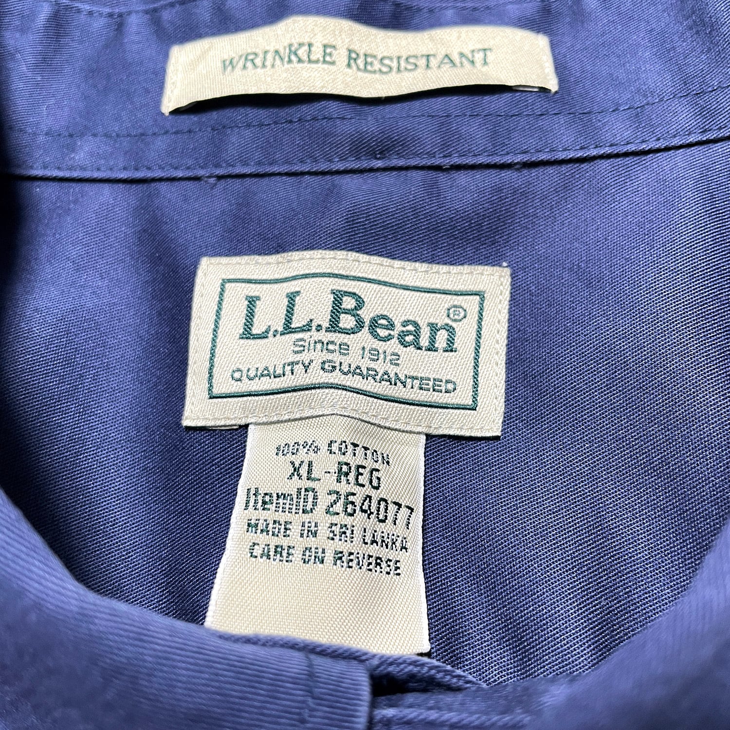 USA 古着 L.L.Bean エルエルビーン アウトドア コットン BDシャツ 長袖シャツ 無地 ネイビー メンズXL 紺色 ボタンダウン BG1124