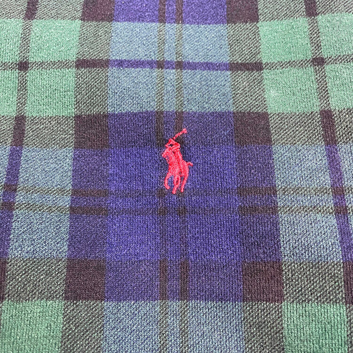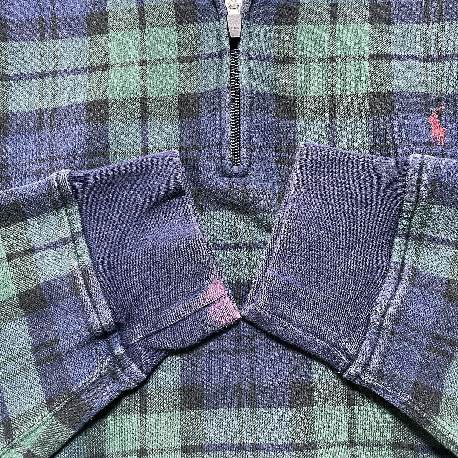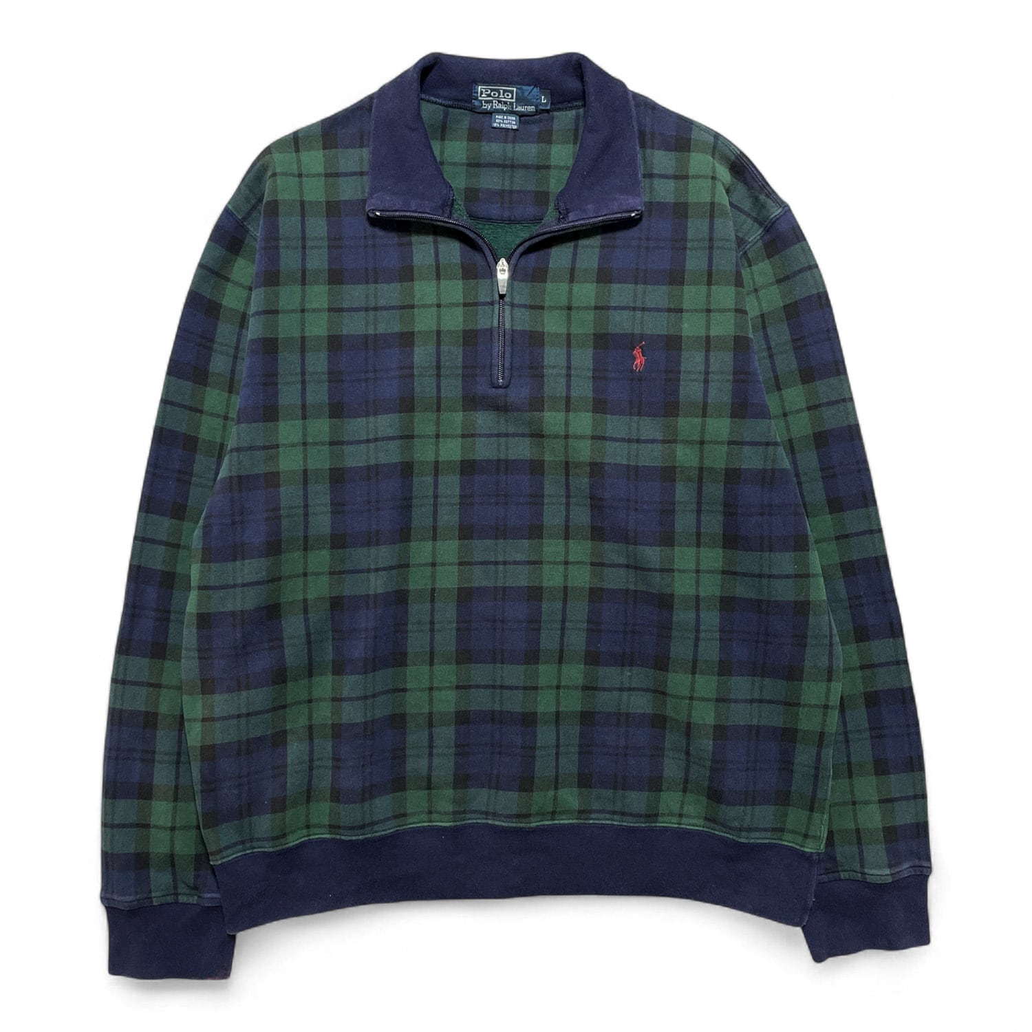 USA 古着 Polo by Ralph Lauren ポロバイラルフローレン ハーフジップ スウェット トレーナー ブラックウォッチ チェック メンズL BD2978