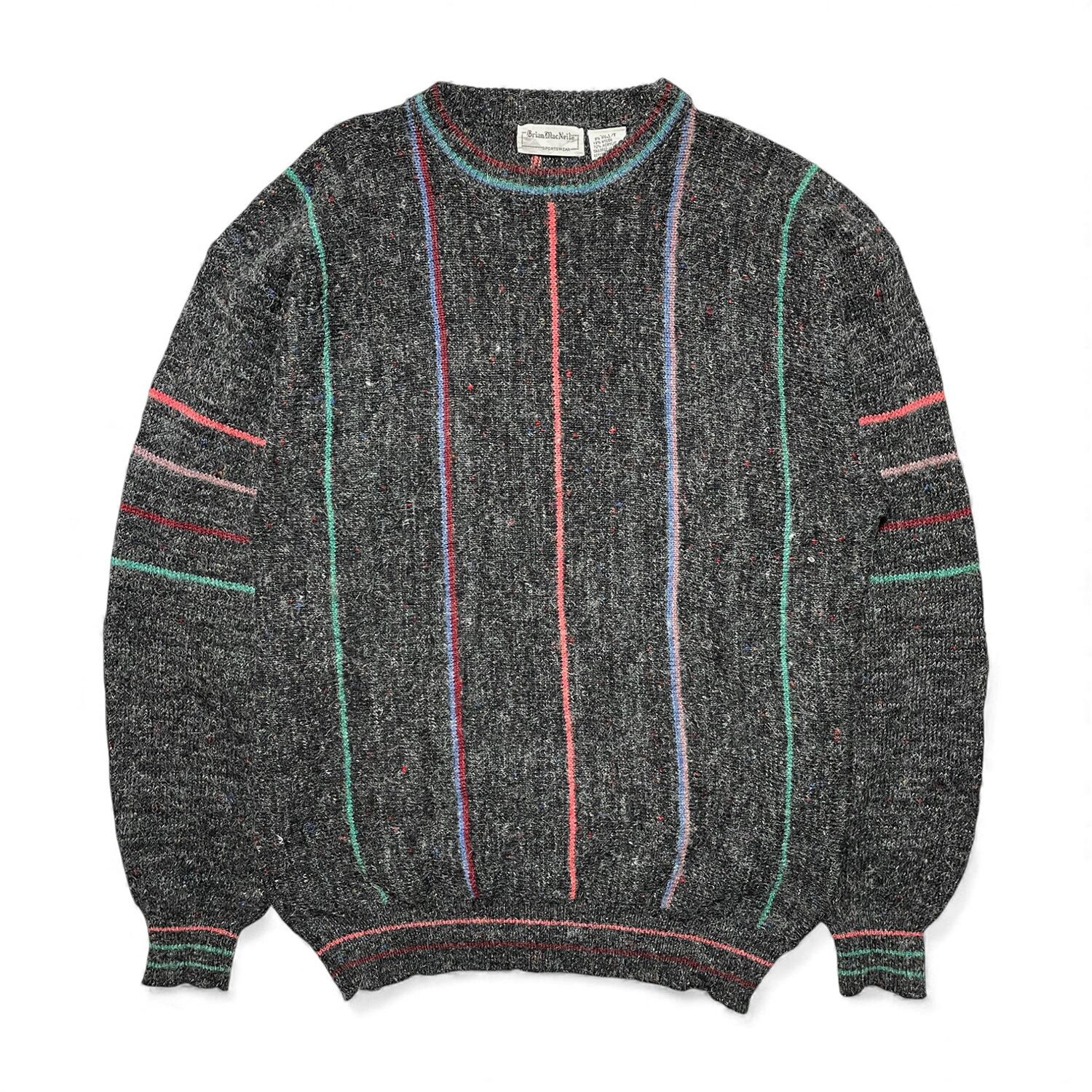 USA 古着 90S Brian Mac Neil ヴィンテージ アクリル/ネップ ニット クルーネック セーター チャコール系 メンズL BJ1018