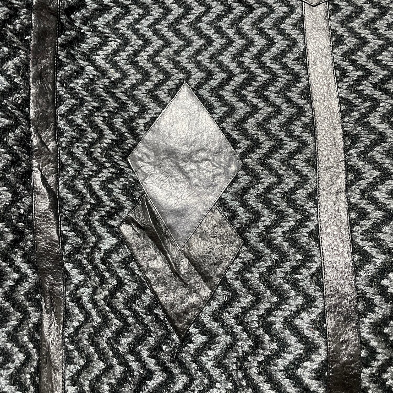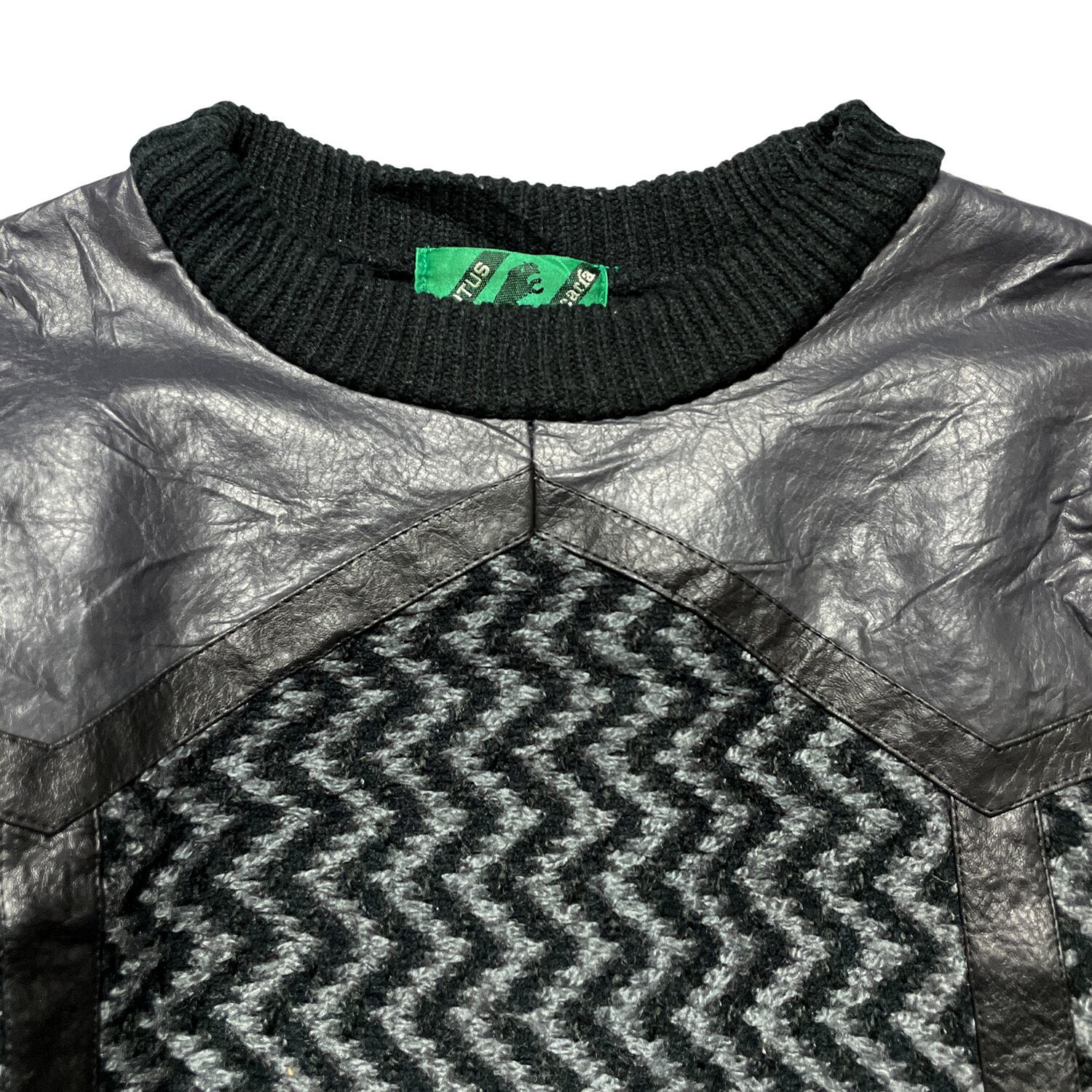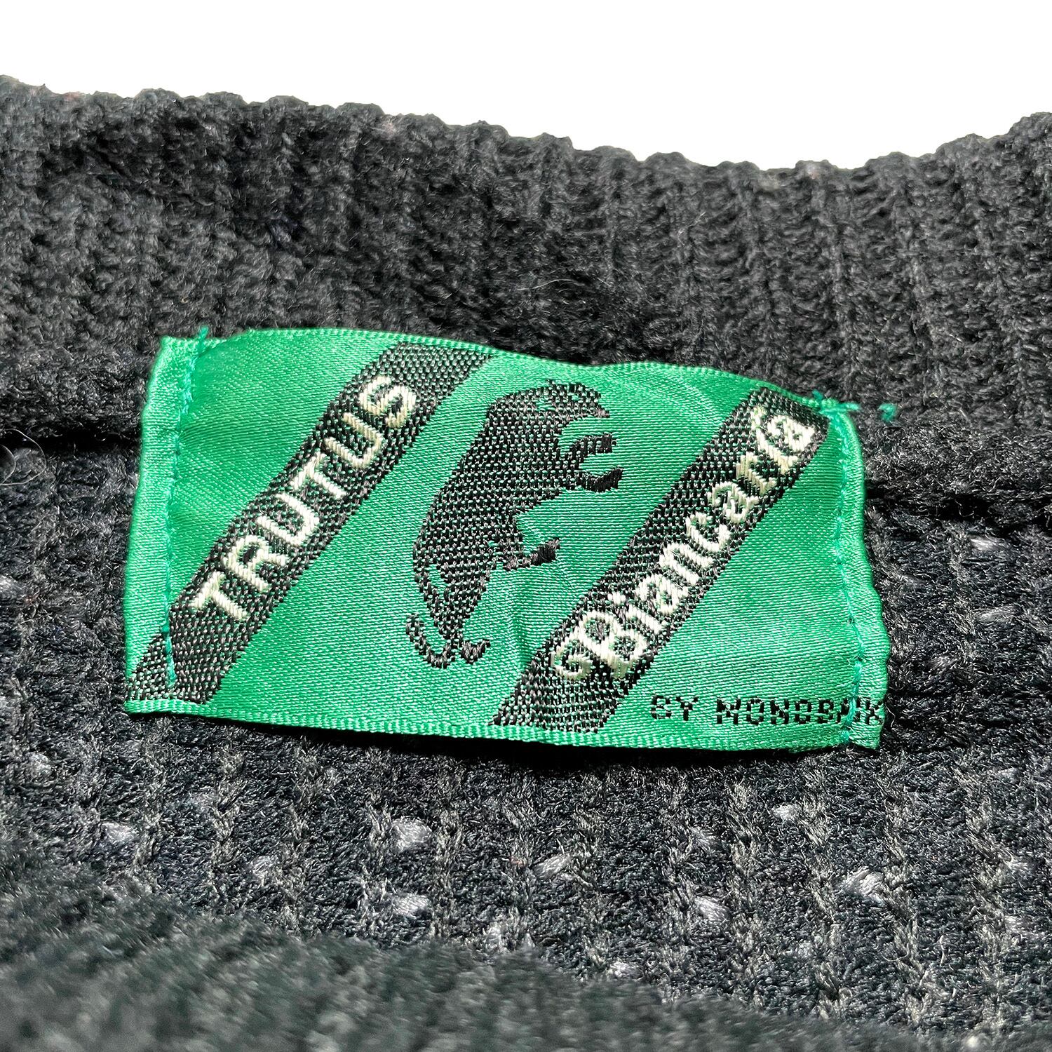 USA 古着 80S TRUTUS Biancarfa ヴィンテージ アクリル ダイヤ柄 レザー貼り クルーネック デザインニット セーター メンズXL相当 BJ1019