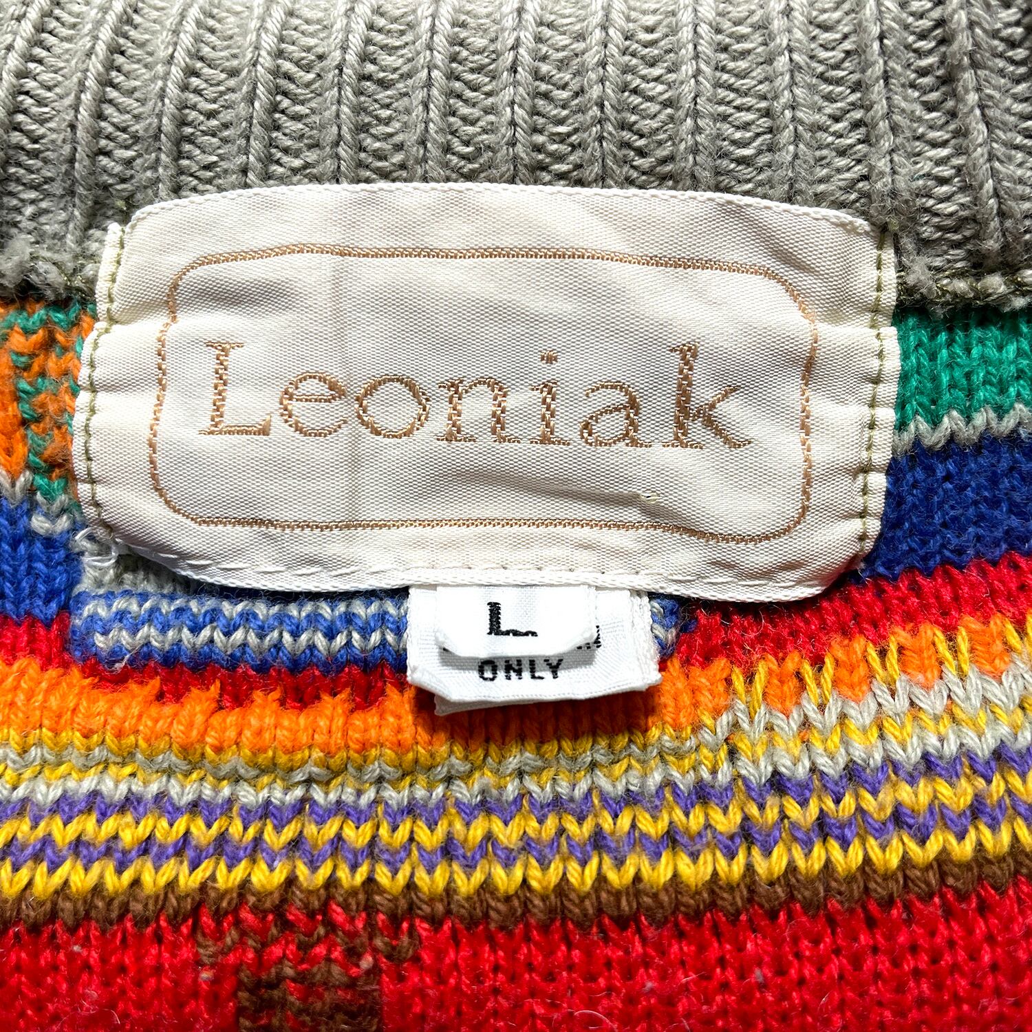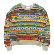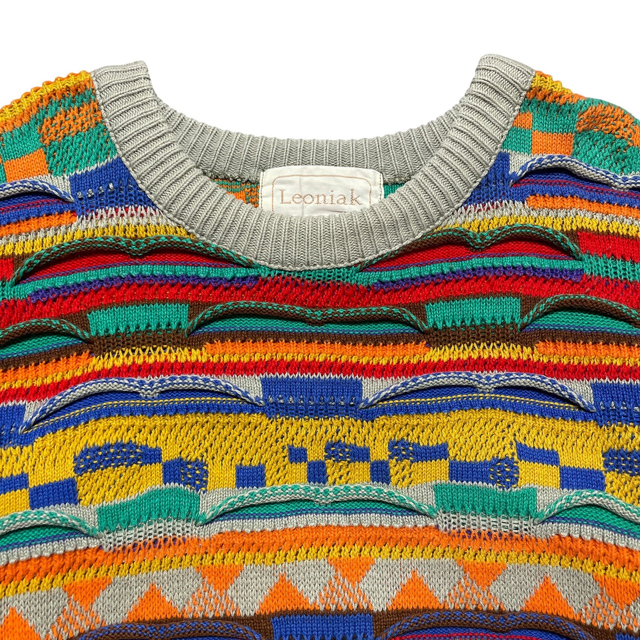 USA 古着 90S Leoniak ヴィンテージ コットン 3Dニット 総柄 クルーネック セーター メンズL BJ1021
