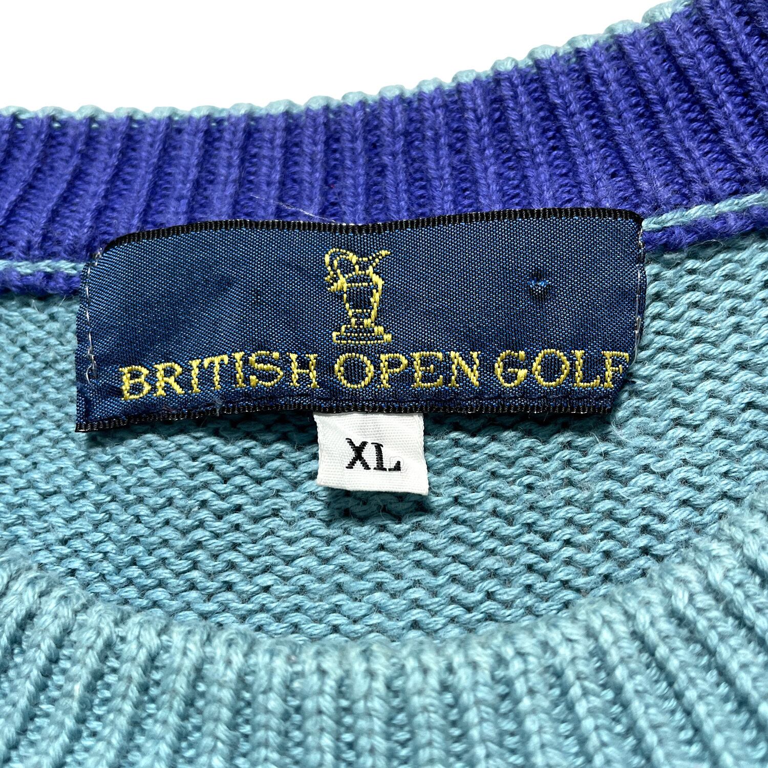 USA 古着 BRITISH OPEN GOLF ヴィンテージ ブリティッシュオープンゴルフ コットン 総柄 クルーネック セーター メンズXL BJ1022