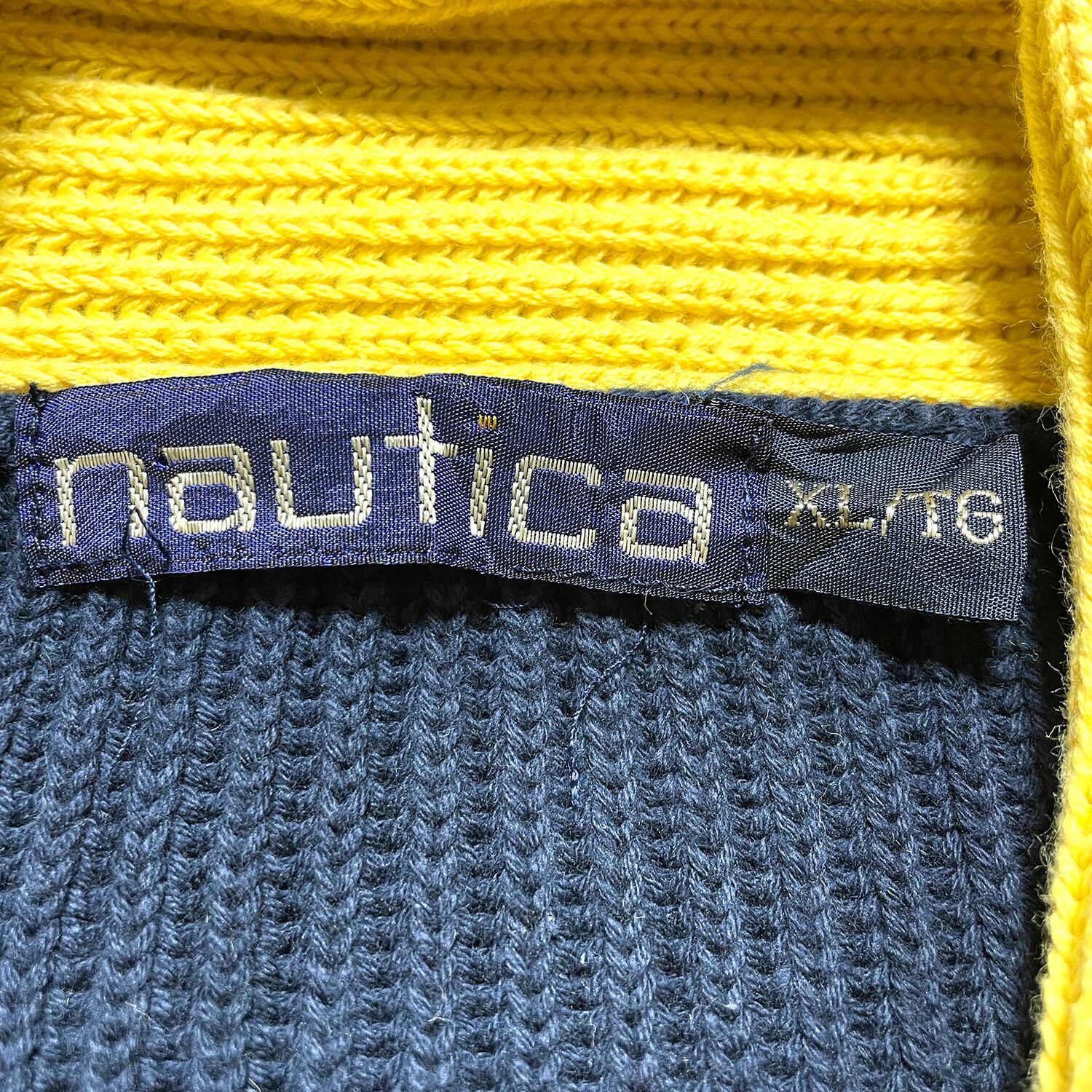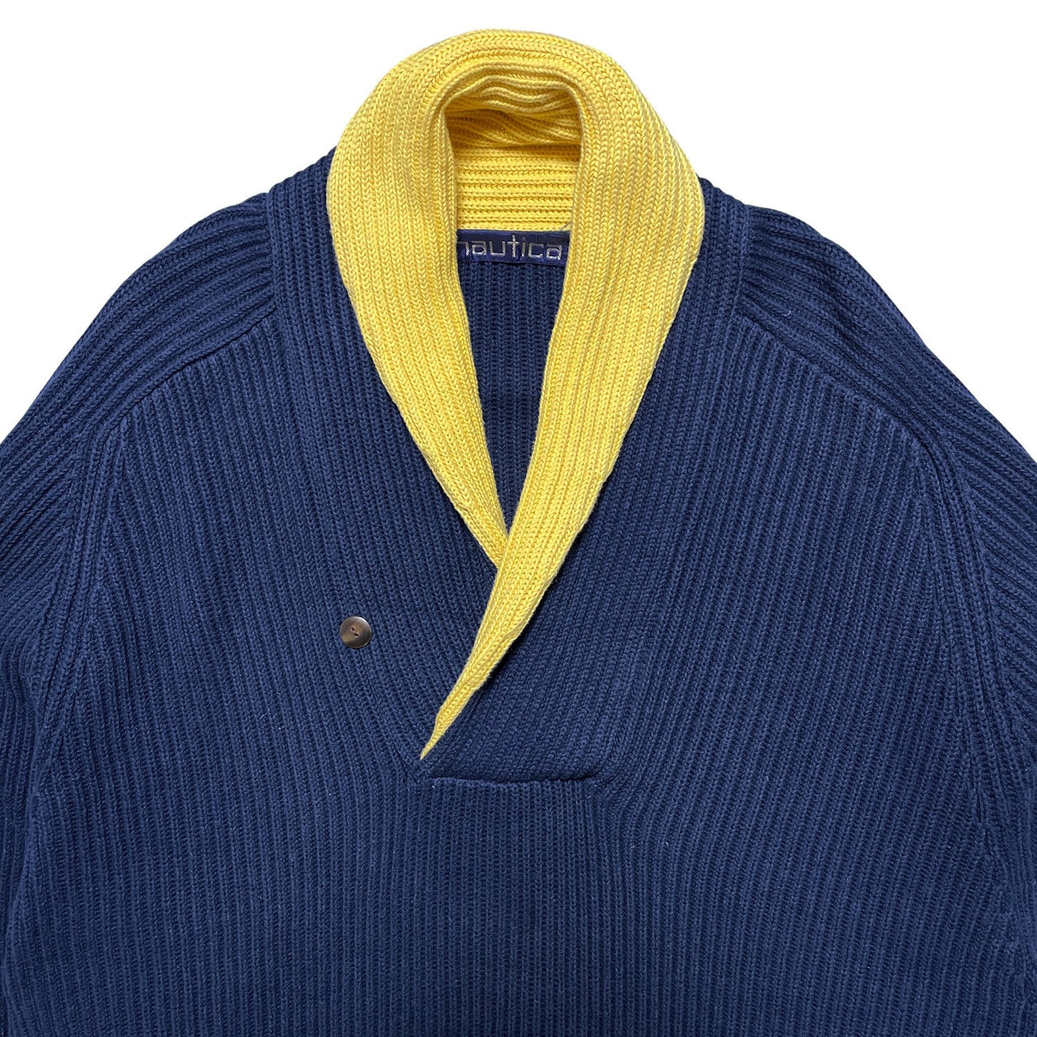 USA 古着 90S nautica ヴィンテージ ノーティカ コットンニット ショールカラー セーリング セーター ネイビー メンズXL BJ1023