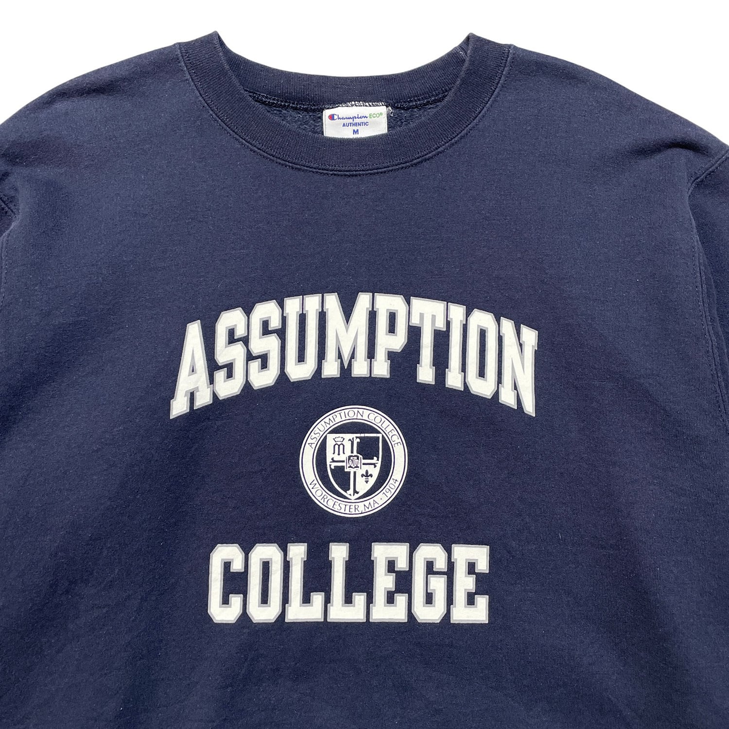 USA 古着 Champion チャンピオン アサンプション大学 カレッジ クルーネック スウェット トレーナー プリント ネイビー 紺色 メンズM BD3005
