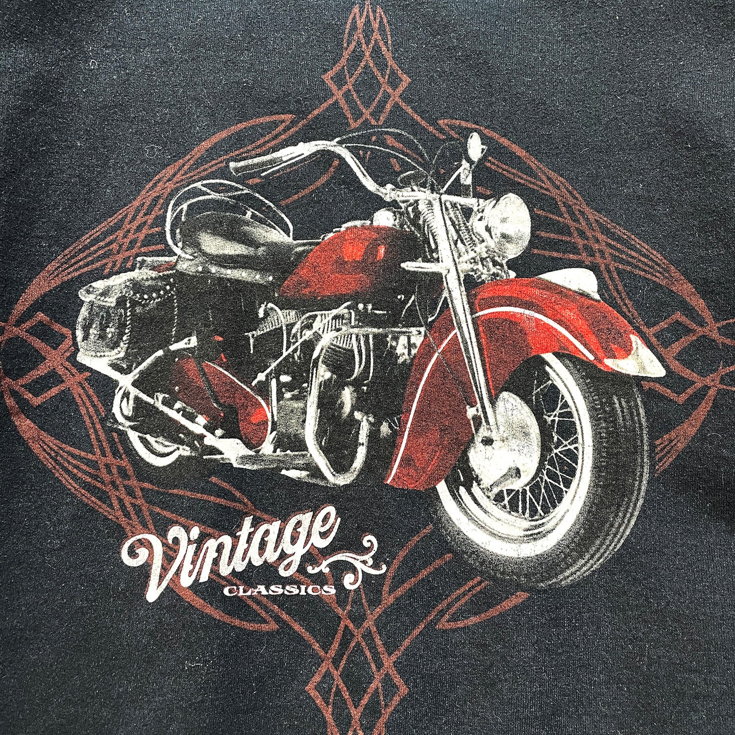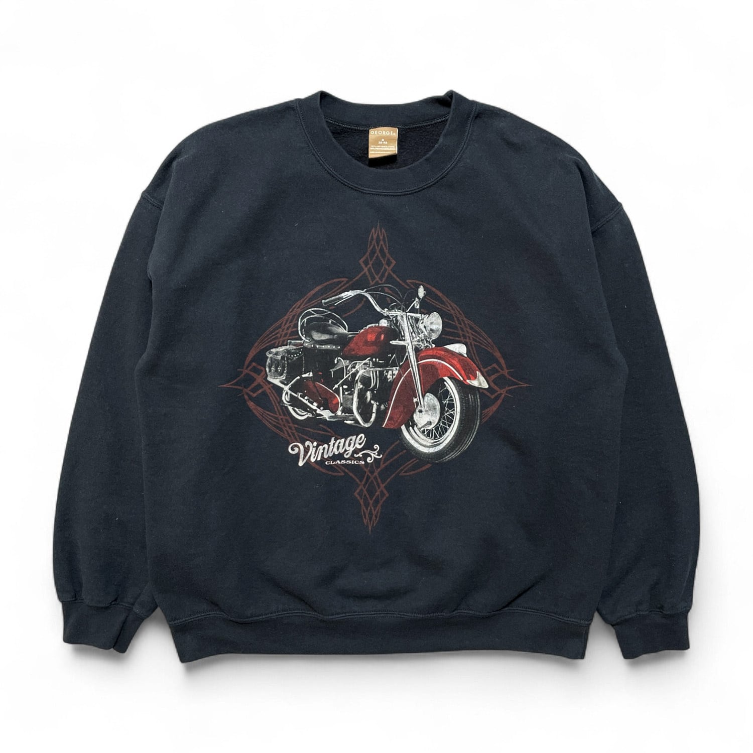 USA 古着 ヴィンテージ バイク クルーネック スウェット トレーナー プリント ブラック メンズM BD3009