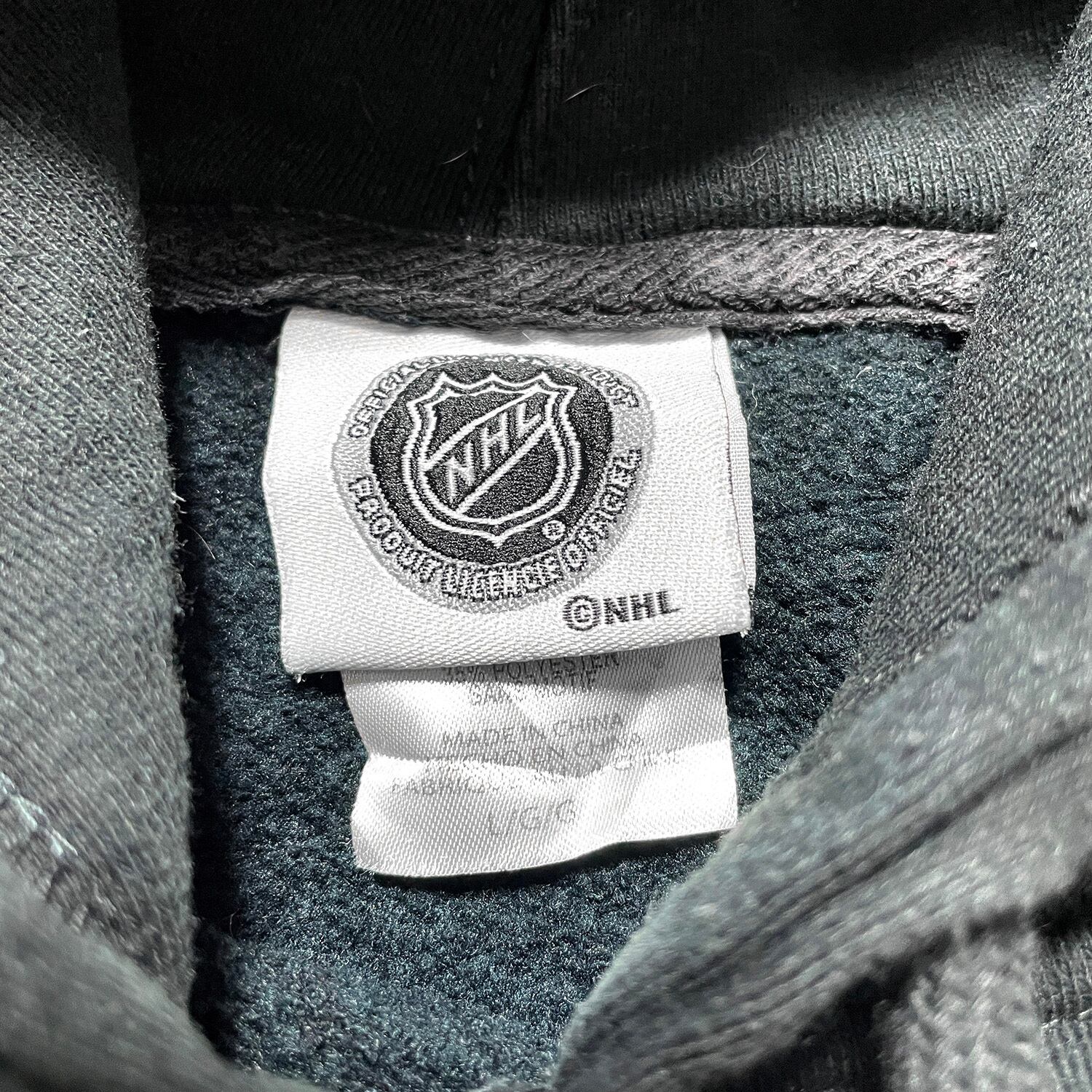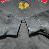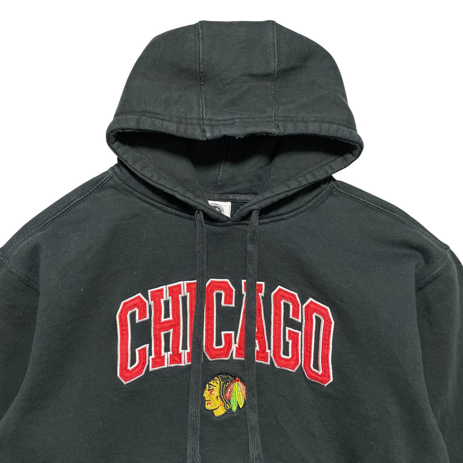 USA 古着 NHL シカゴブラックホークス スウェット パーカー 刺繍 ロゴ ブラック メンズL アイスホッケー 黒色 BE0934