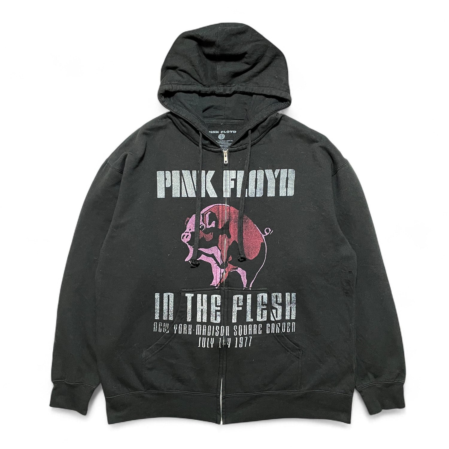 USA 古着 Pink Floyd ピンクフロイド ジップアップ スウェット パーカー ロゴ プリント ブラック メンズXL バンド ロック 音楽 BE0938