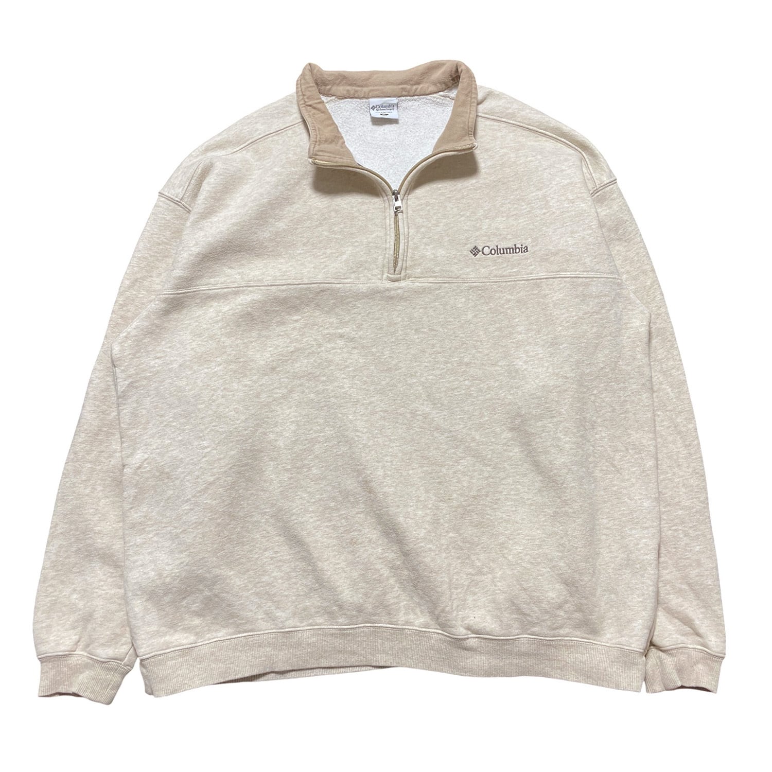 USA 古着 Colombia コロンビア ハーフジップ スウェット トレーナー ワンポイント ロゴ ベージュ メンズXL アウトドア BD3023