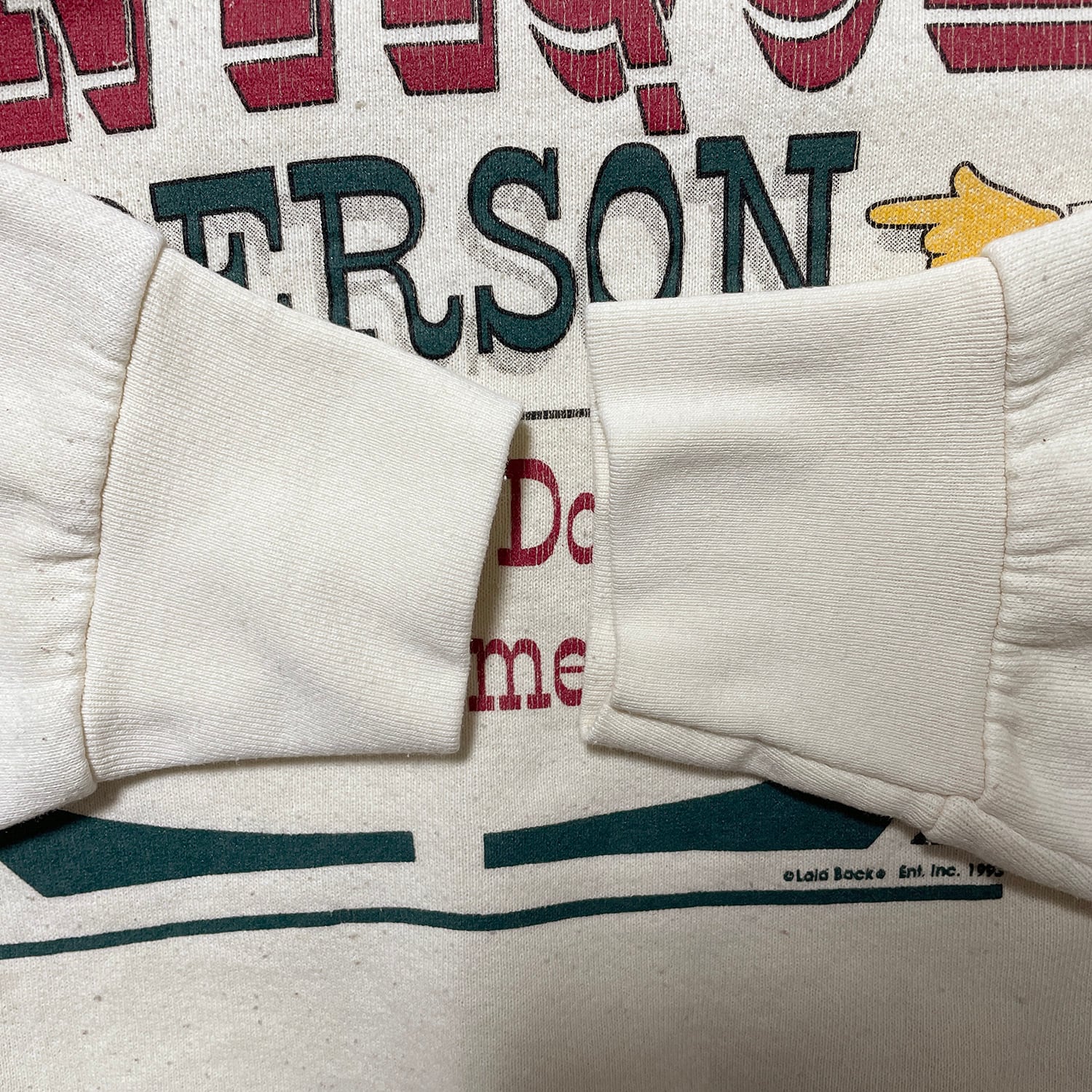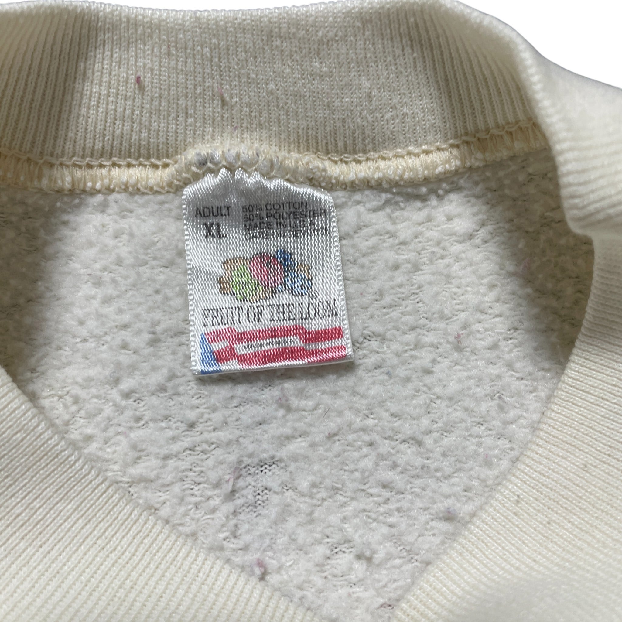 古着 USA製 90S クルーネック ヴィンテージ スウェット トレーナー プリント アイボリー メンズXL BD2996