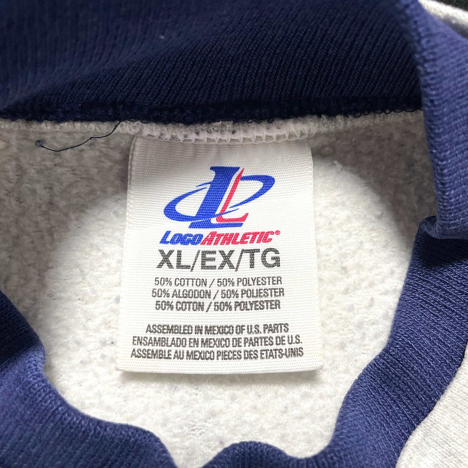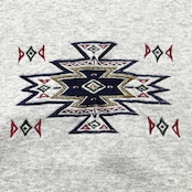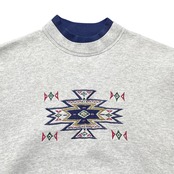 USA 古着 ダブルネック スウェット トレーナー ネイティブ柄 刺繍 グレー メンズXL BD3027