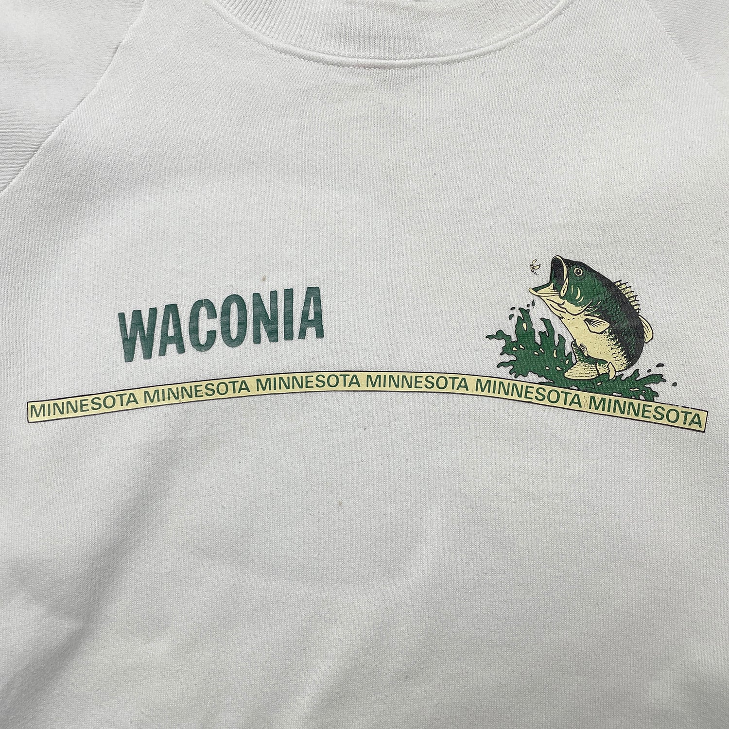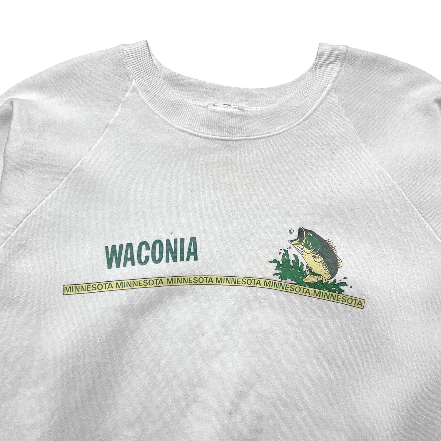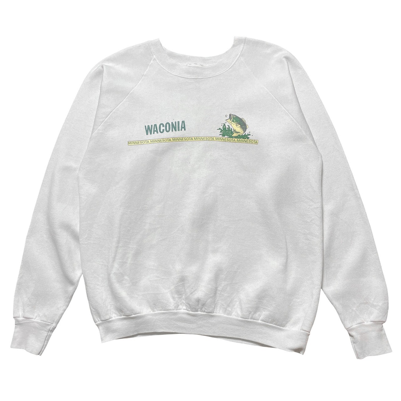 古着 USA製 90S ワコニア ブラックバス ヴィンテージ クルーネック スウェット トレーナー プリント ホワイト メンズXL BD3029