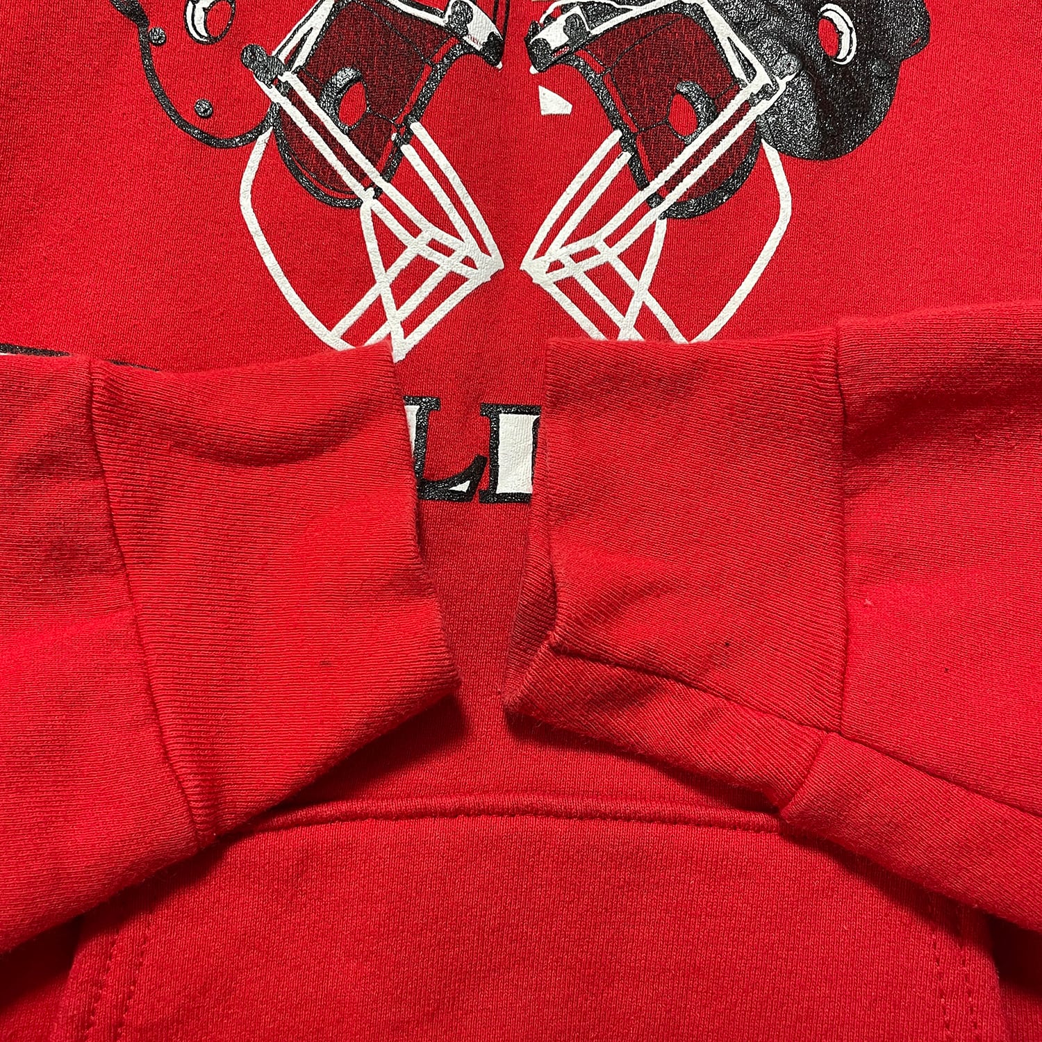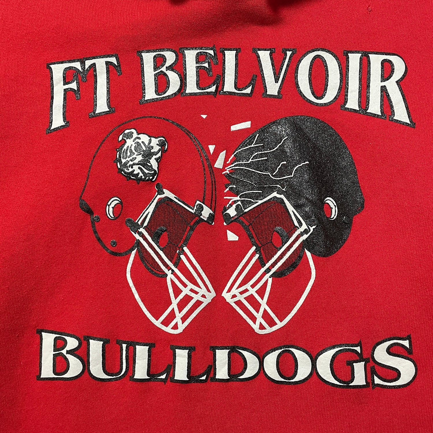 USA 古着 フォートベルヴォアール ブルドッグス スウェット パーカー プリント レッド メンズXL BE0958