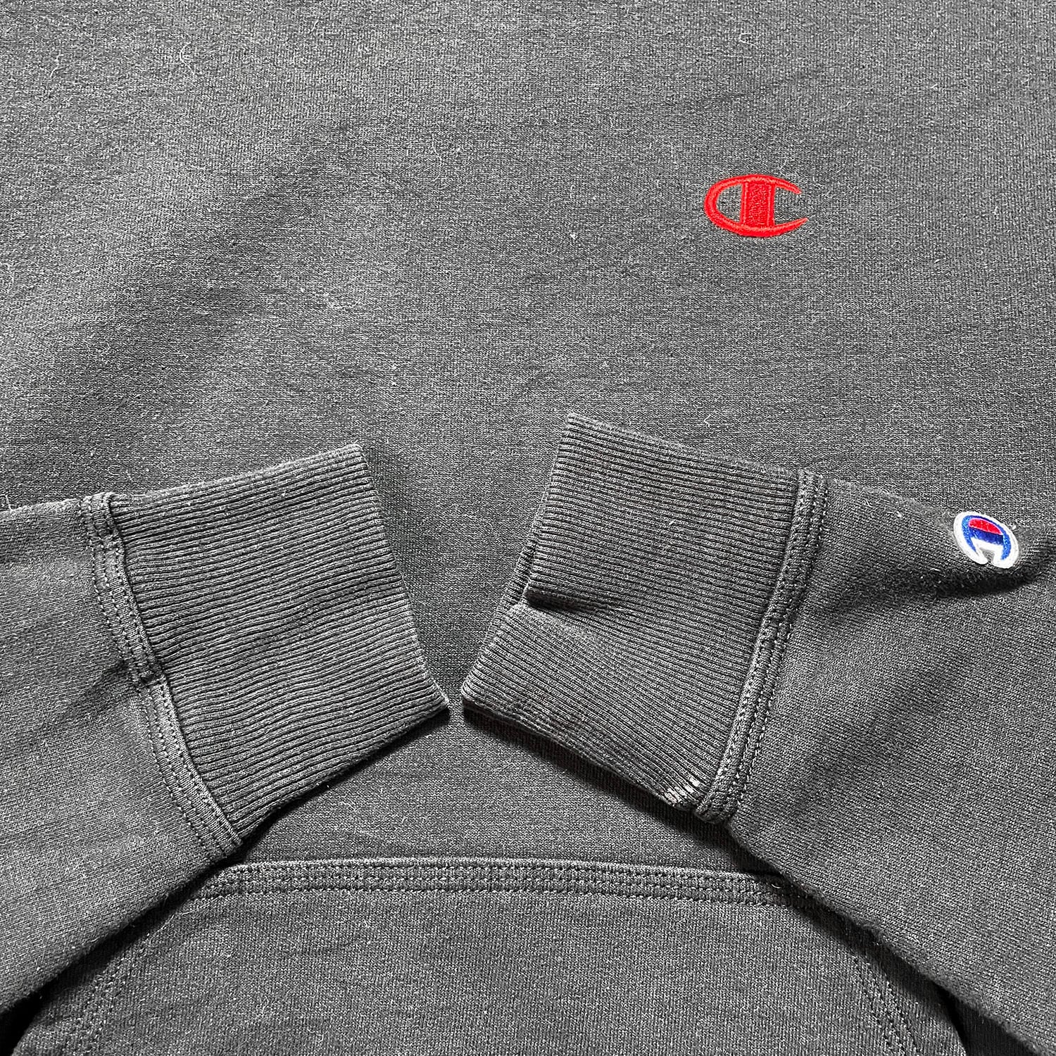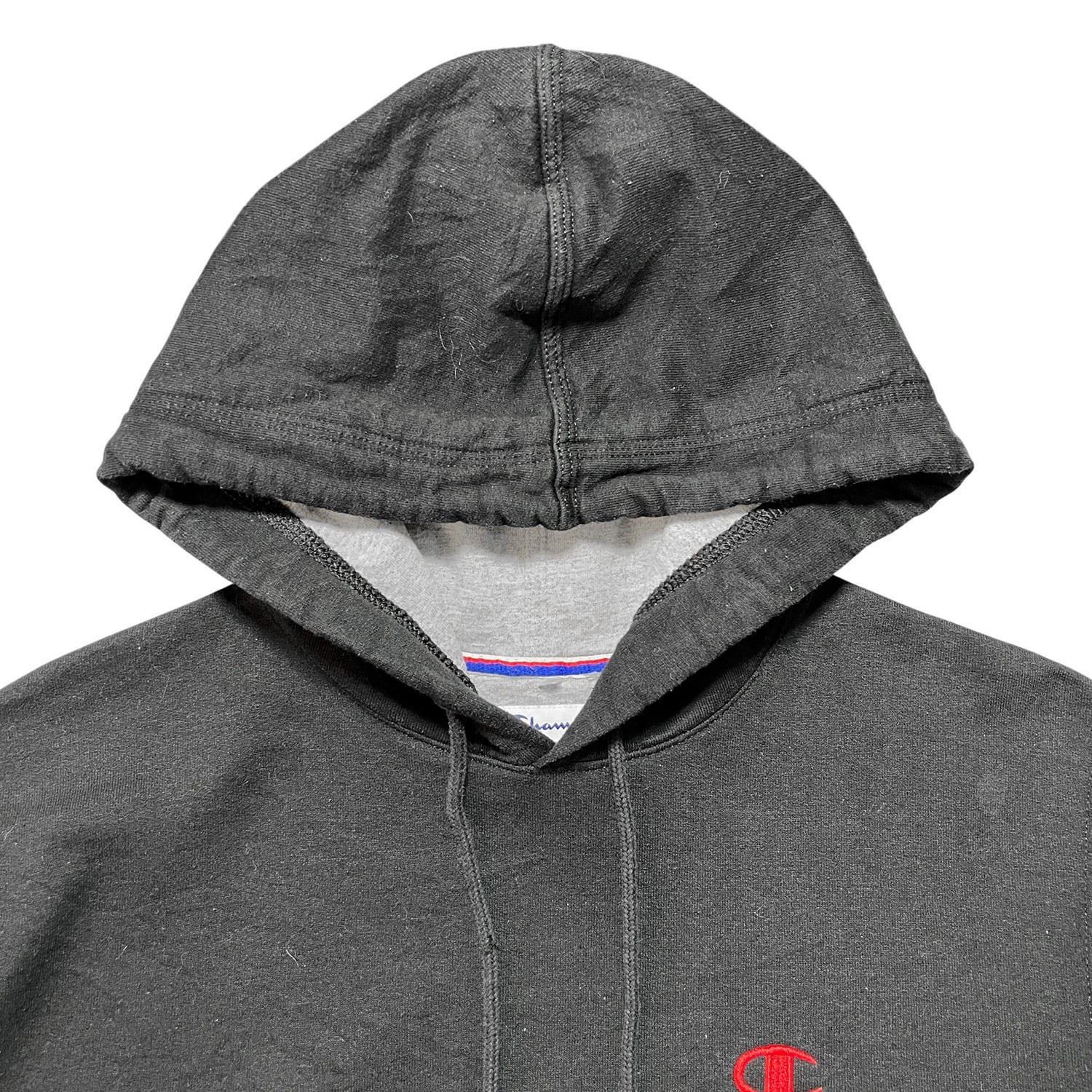 USA 古着 Champion チャンピオン スウェット パーカー Cマーク ロゴ 刺繍 ブラック 黒 プルオーバー 裏起毛 BE0955