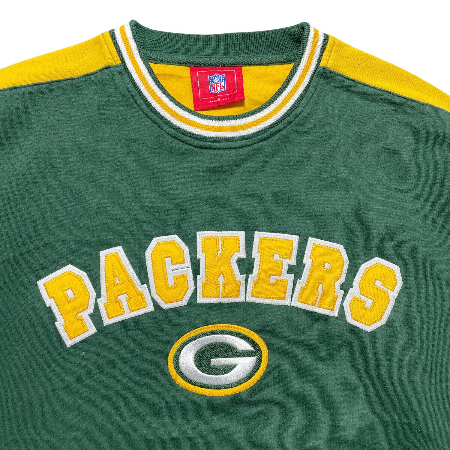 USA 古着 NFL PACKERS グリーンベイ パッカーズ クルーネック スウェット トレーナー アメフト メンズL グリーン BD3031