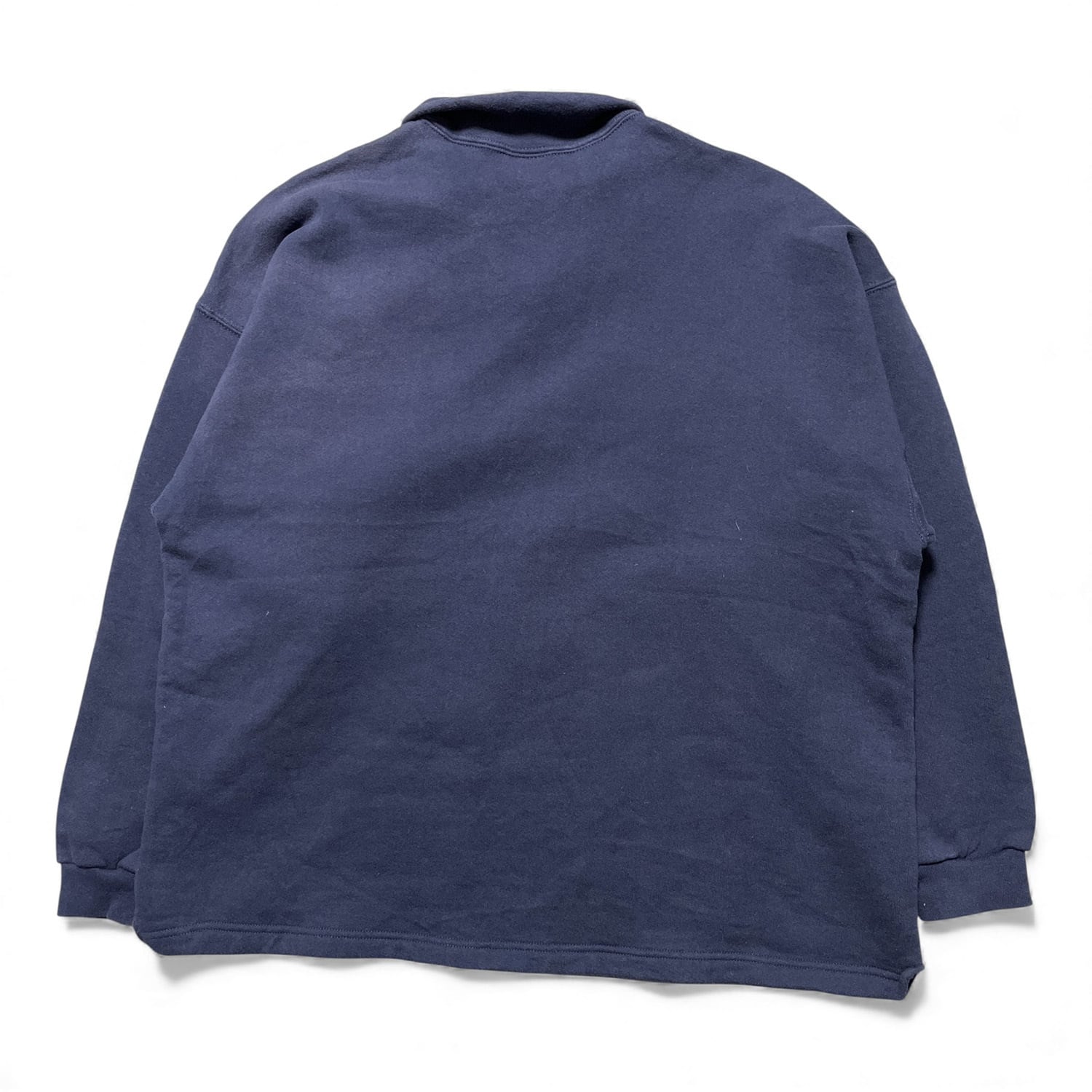 USA 古着 Hard Rock Cafe ハードロックカフェ ハーフジップ スウェット トレーナー 刺繍 ロゴ ネイビー メンズXL BD3039