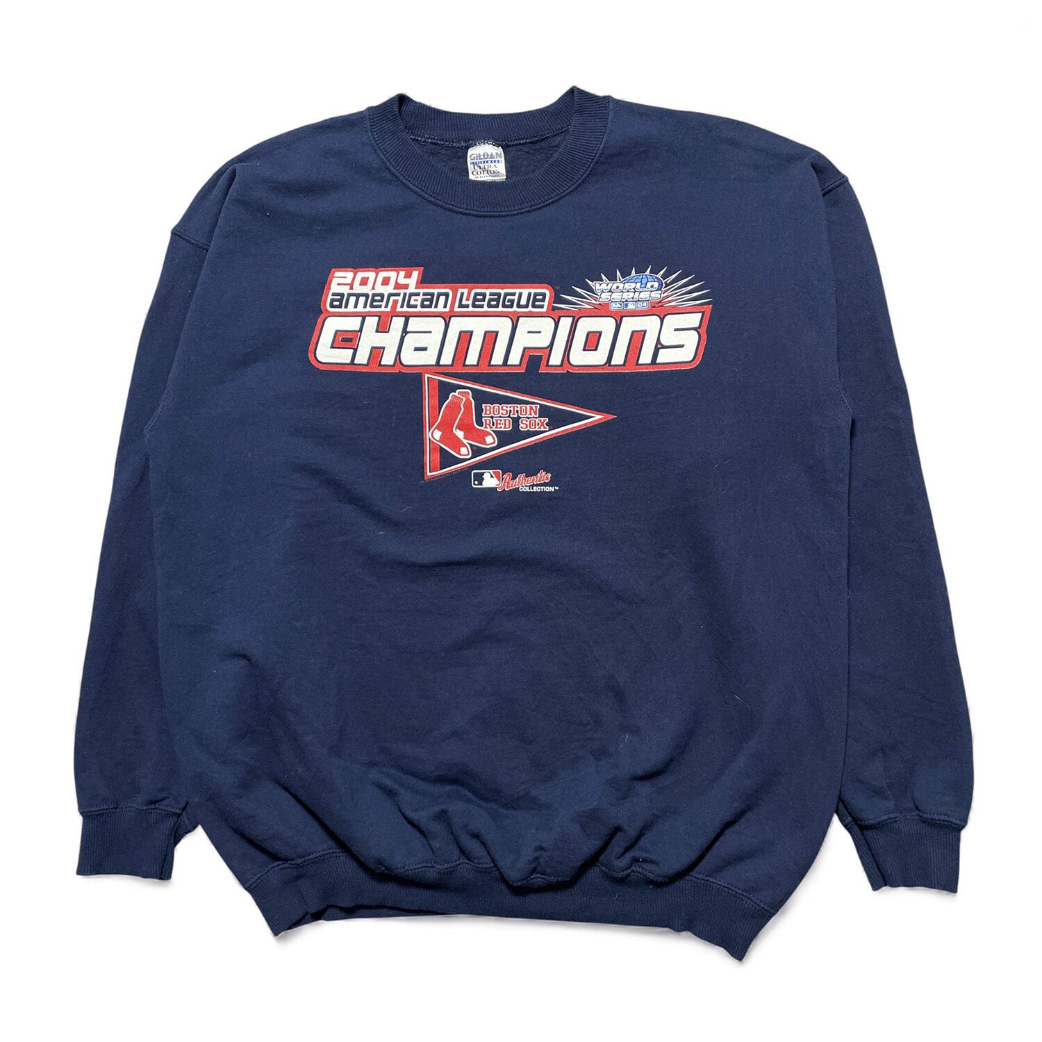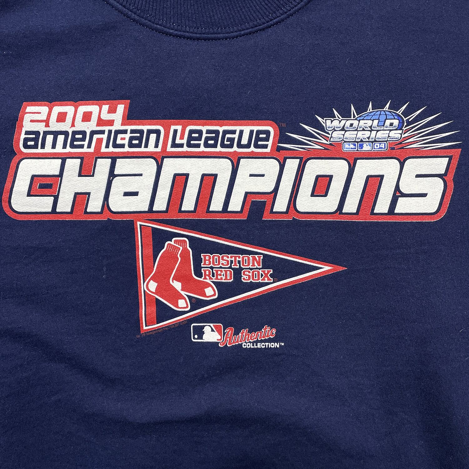 USA 古着 00S MLB レッドソックス クルーネック スウェット トレーナー ロゴ プリント ネイビー メンズL メジャーリーグ BD3041