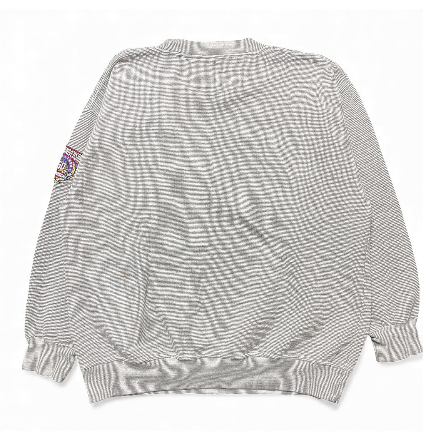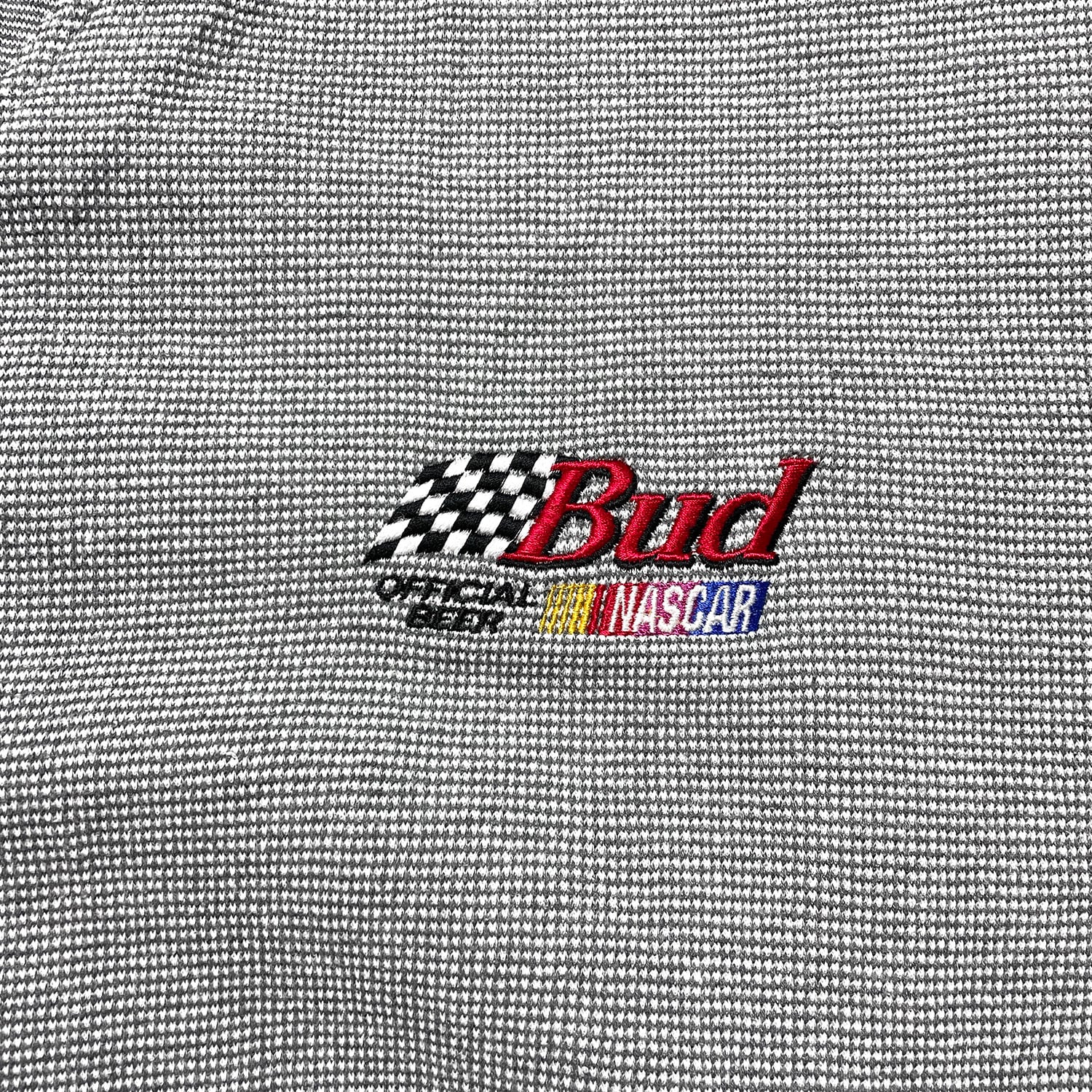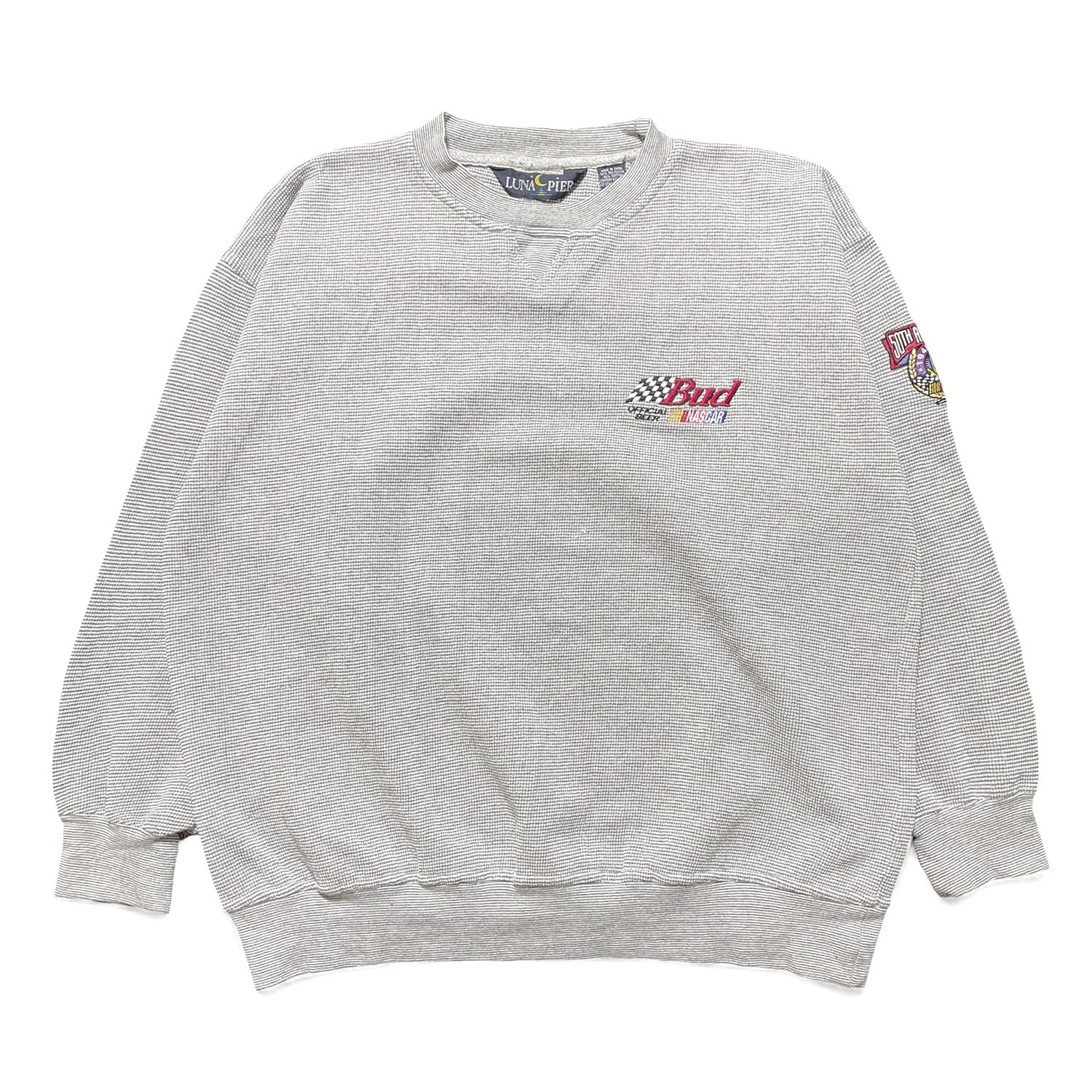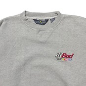USA 古着 LUNA PIRE NASCAR ナスカー クルーネック 前V スウェット トレーナー 刺繍 ロゴ バドワイザー メンズXL グレー BD3049