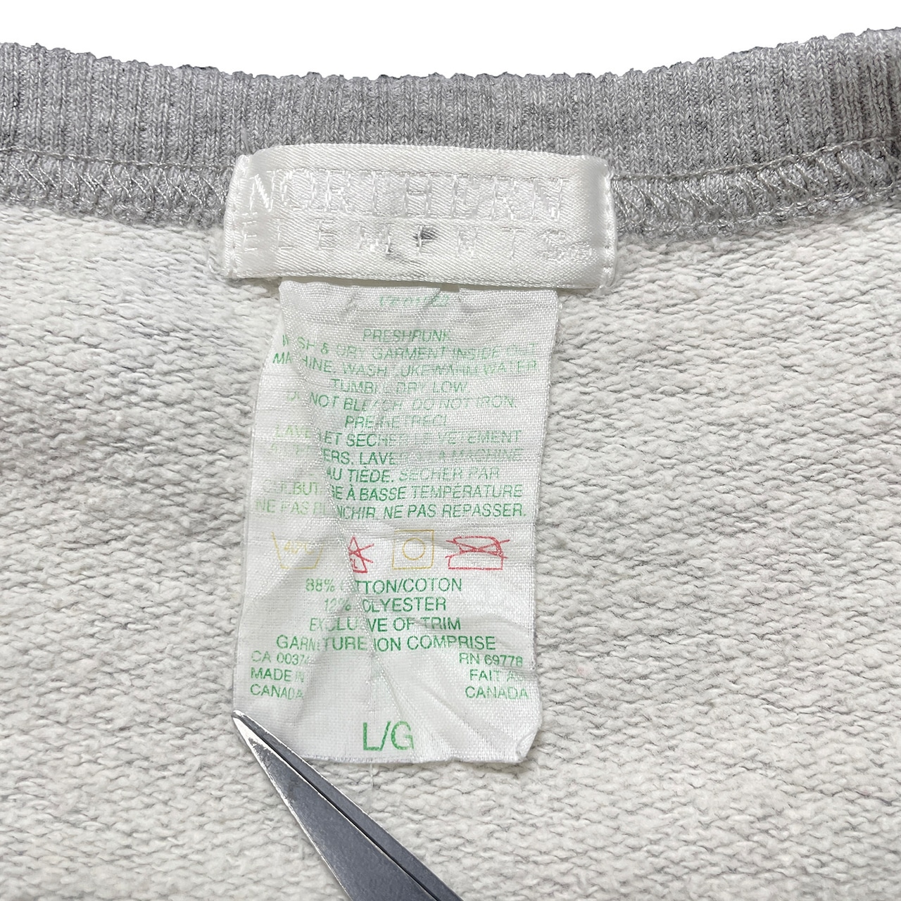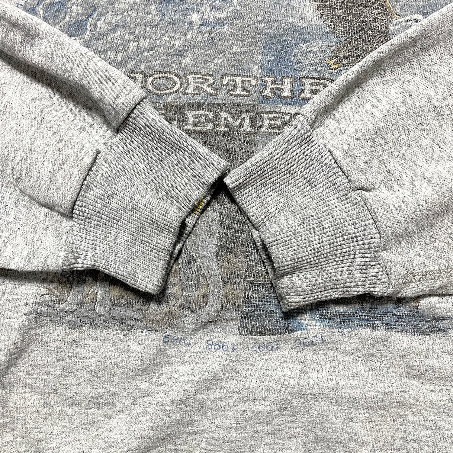 USA 古着 00S NORTHERN ELEMENTS クルーネック スウェット トレーナー アニマルプリント オオカミ ヘラジカ 白頭ワシ グレー メンズL BD3051