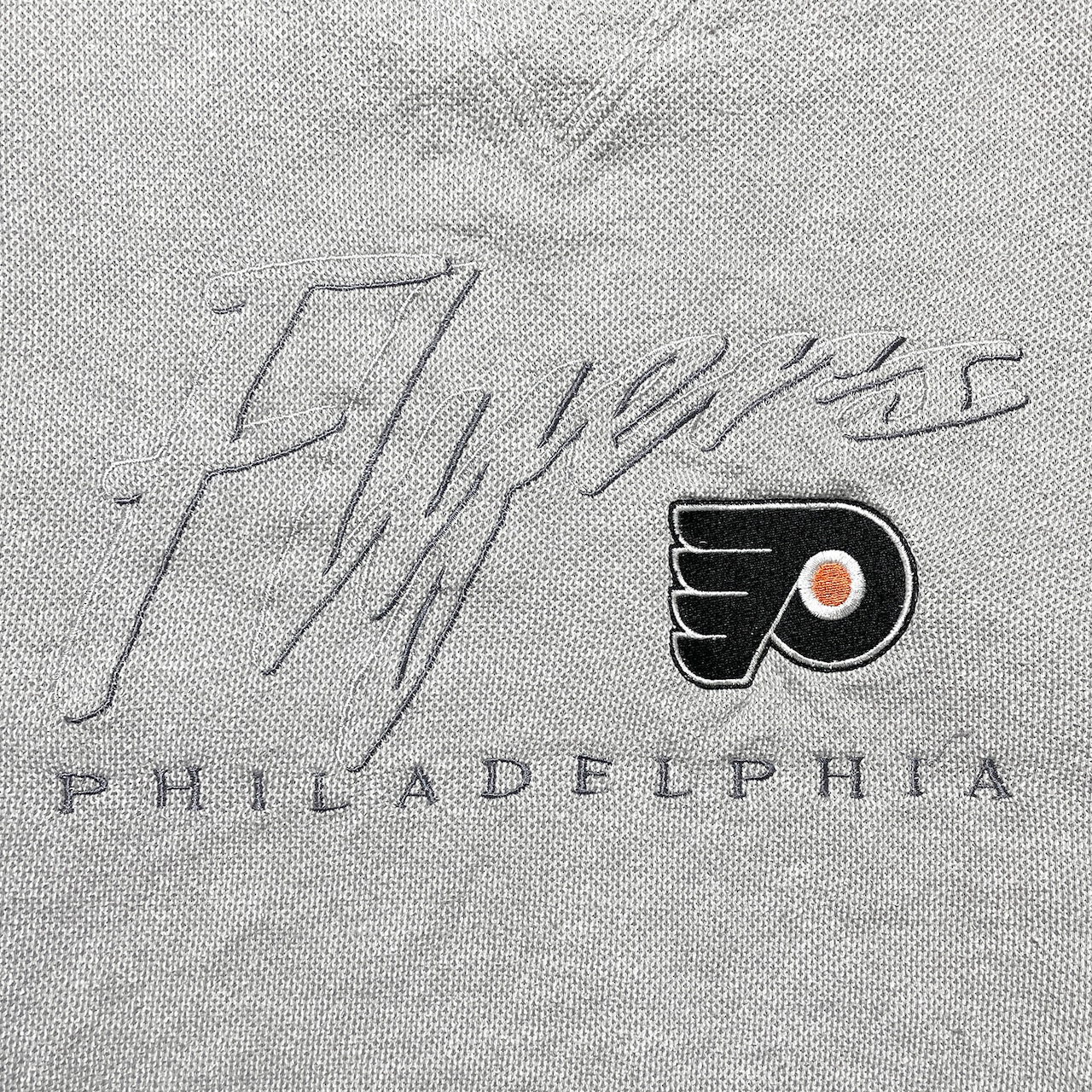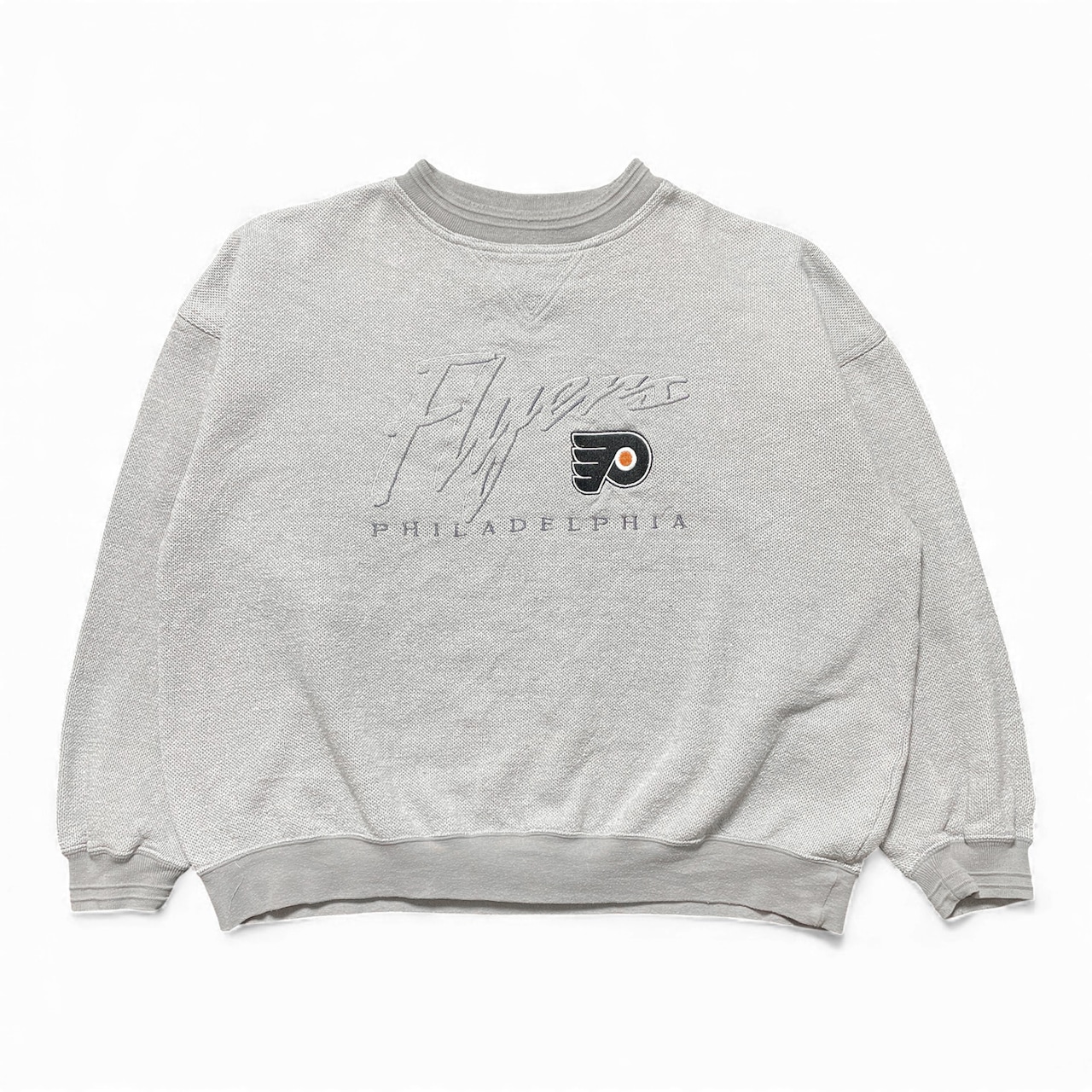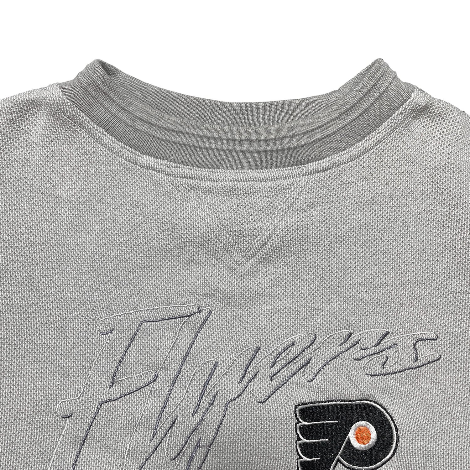 USA 古着 NHL フィラデルフィアフライヤーズ クルーネック スウェット トレーナー ロゴ 刺繍 グレー メンズXL 裏起毛 BD3053