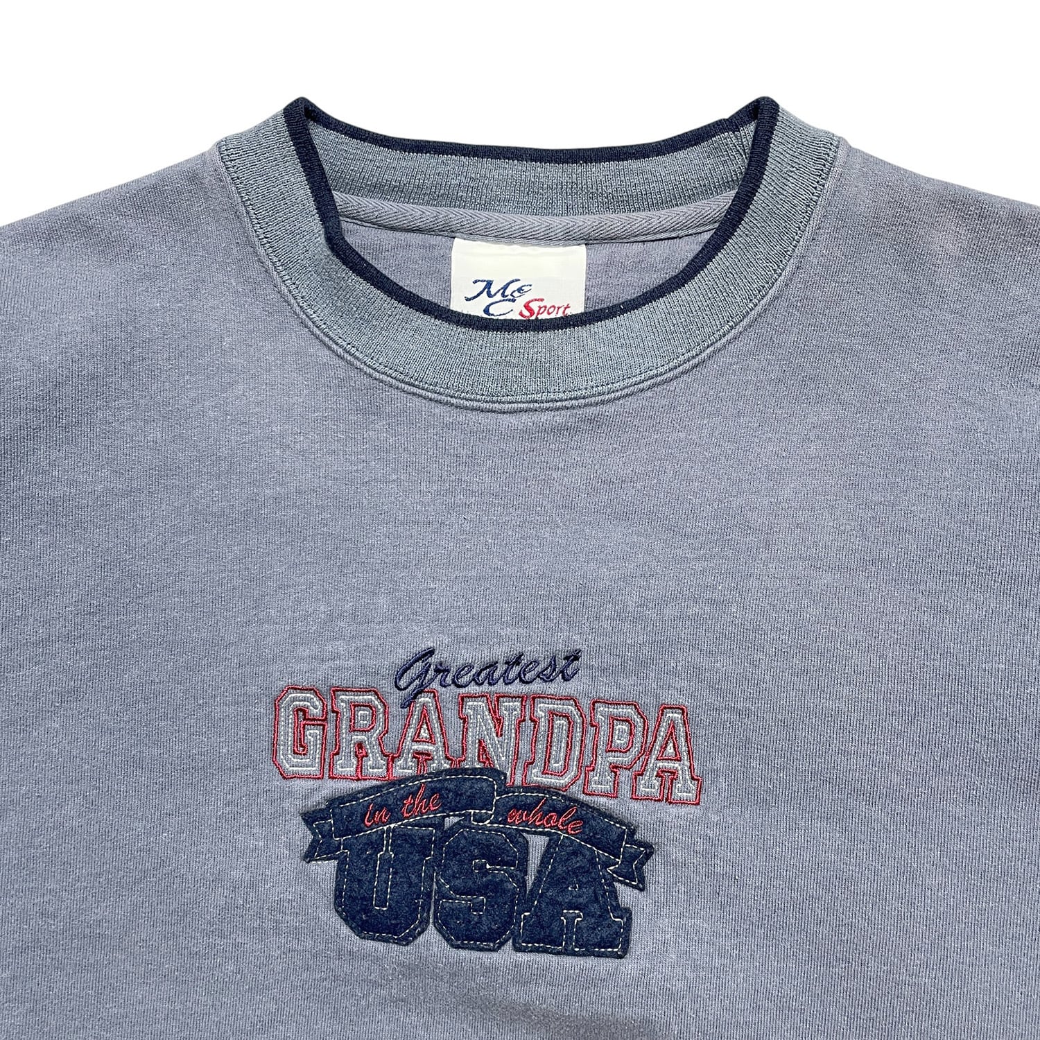 USA 古着 グランパ クルーネック スウェット トレーナー 刺繍 ネイビー 紺色 メンズXL BD3103