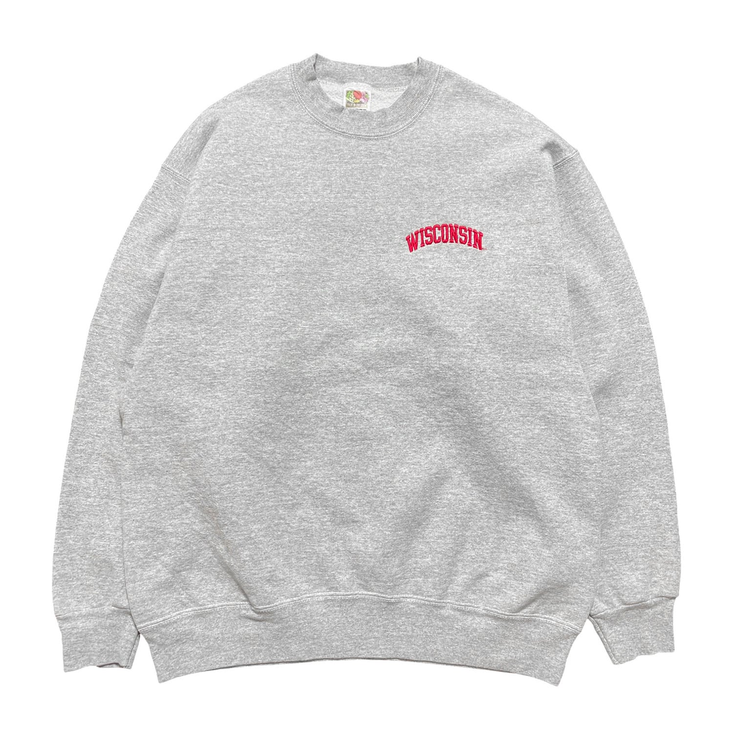 古着 USA製 ウィスコンシン大学 カレッジ クルーネック スウェット トレーナー 刺繍 グレー メンズL スーパーコットン BD3108
