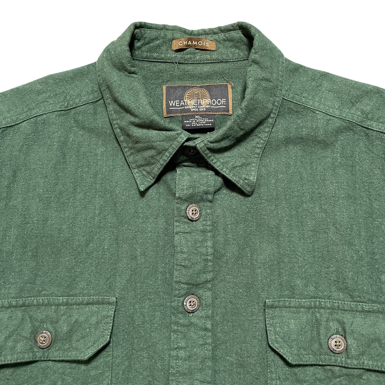 USA 古着 WEATHERPROOF ウェザープルーフ アウトドア シャモアクロス コットン 長袖シャツ メンズXL グリーン ネルシャツ BG1138