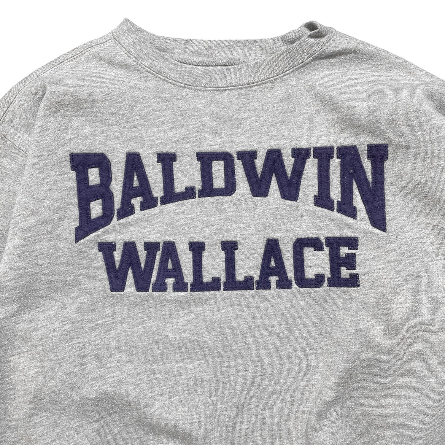 USA 古着 ボールドウィンウォーレス大学 カレッジ クルーネック スウェット トレーナー ロゴ グレー メンズL 程度 BD3109