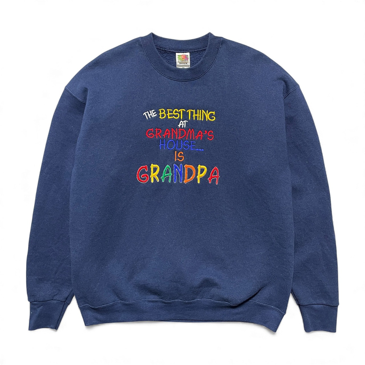 USA 古着 フルーツオブザルーム クルーネック スウェット トレーナー 刺繍 ネイビー メンズXL BD3086