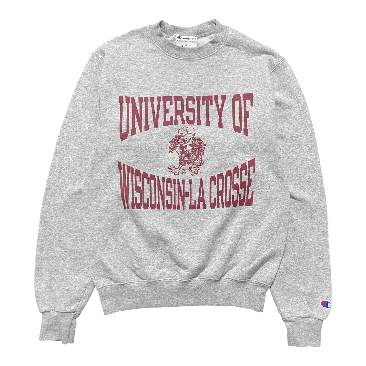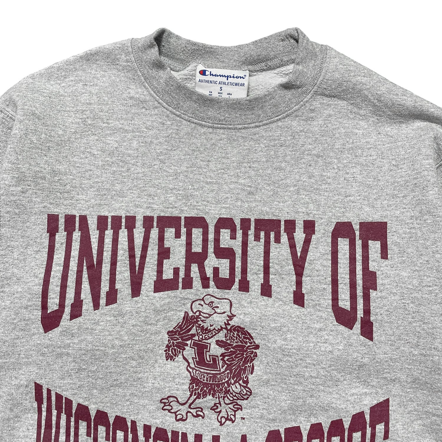 USA 古着 Champion チャンピオン ウィスコンシン大学 カレッジ クルーネック スウェット トレーナー プリント グレー メンズS BD3110
