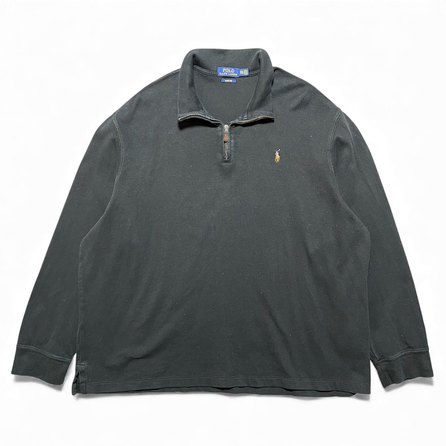 USA 古着 POLO RALPH LAUREN ポロ ラルフローレン ハーフジップ スウェット トレーナー メンズXXL ブラック 黒色 BD3155