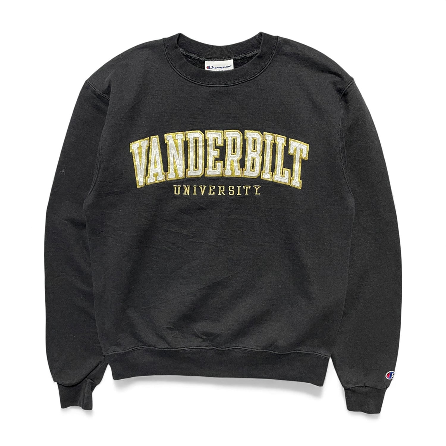 USA 古着 Champion チャンピオン ヴァンダービルト大学 カレッジ クルーネック スウェット トレーナー 刺繍 ロゴ ブラック メンズS BD3082