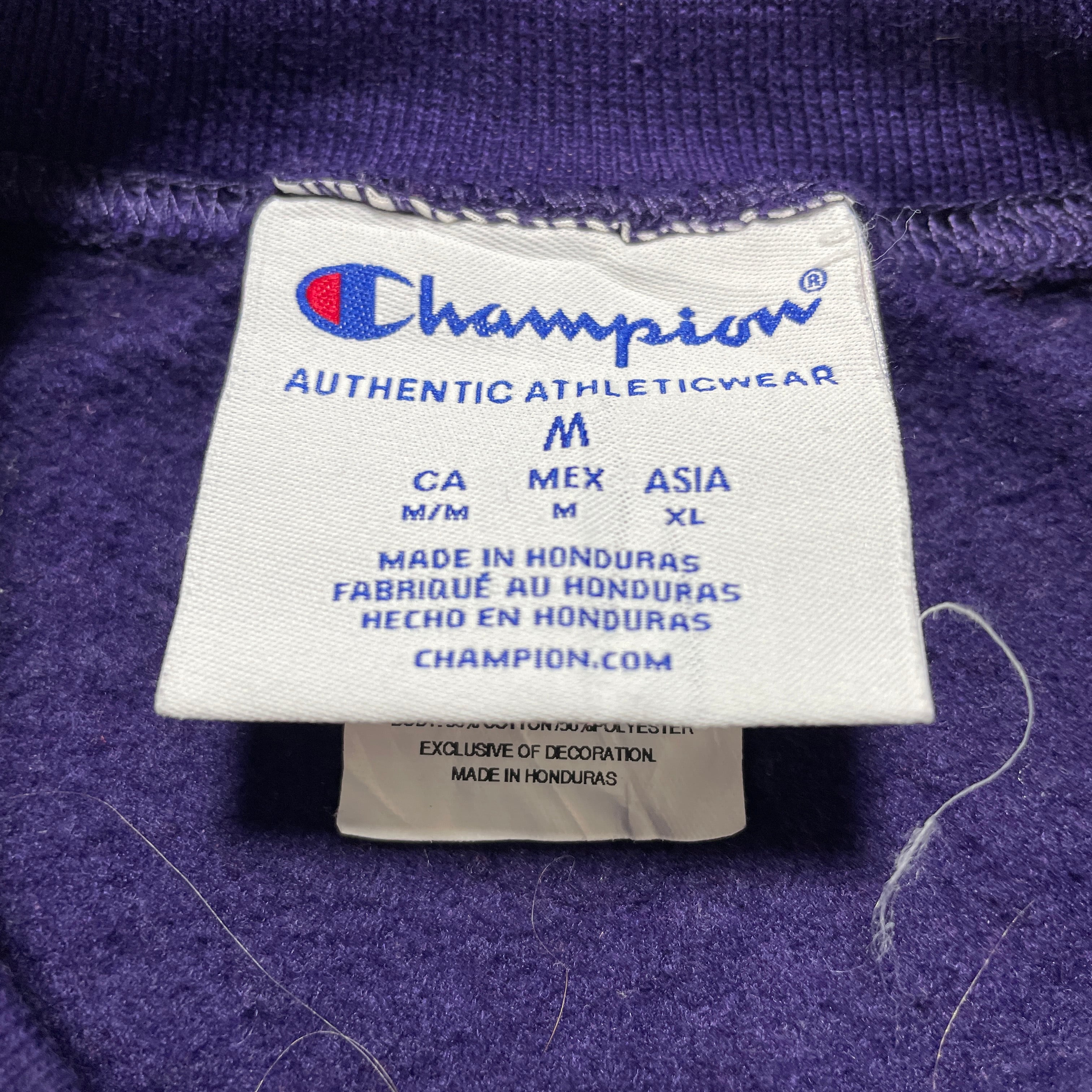 USA 古着 Champion チャンピオン ウェストチェスター大学 カレッジ クルーネック スウェット トレーナー プリント パープル メンズM BD3073