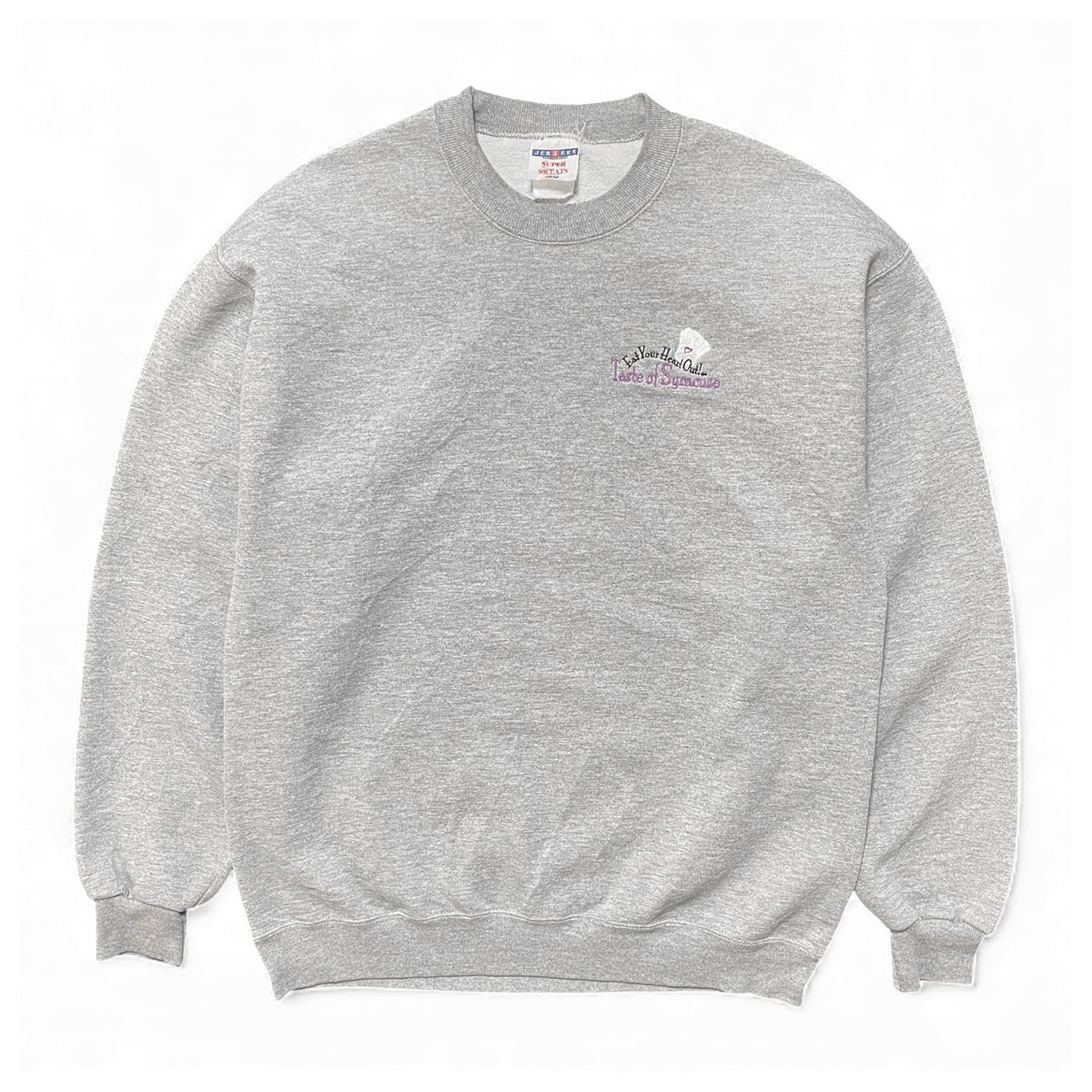 USA 古着 フェス クルーネック スウェット トレーナー 刺繍 ワンポイント ロゴ グレー メンズL BD3069