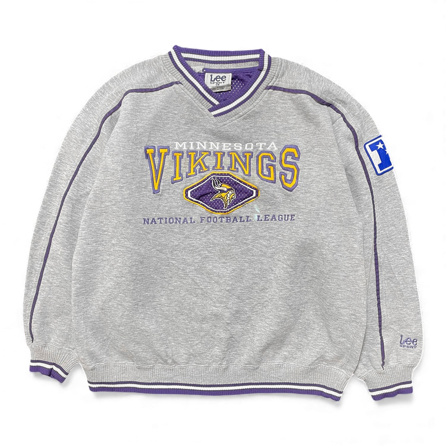 USA 古着 Lee リー NFL ミネソタバイキングス スウェット トレーナー ロゴ 刺繍 グレー メンズL フットボール BD3066