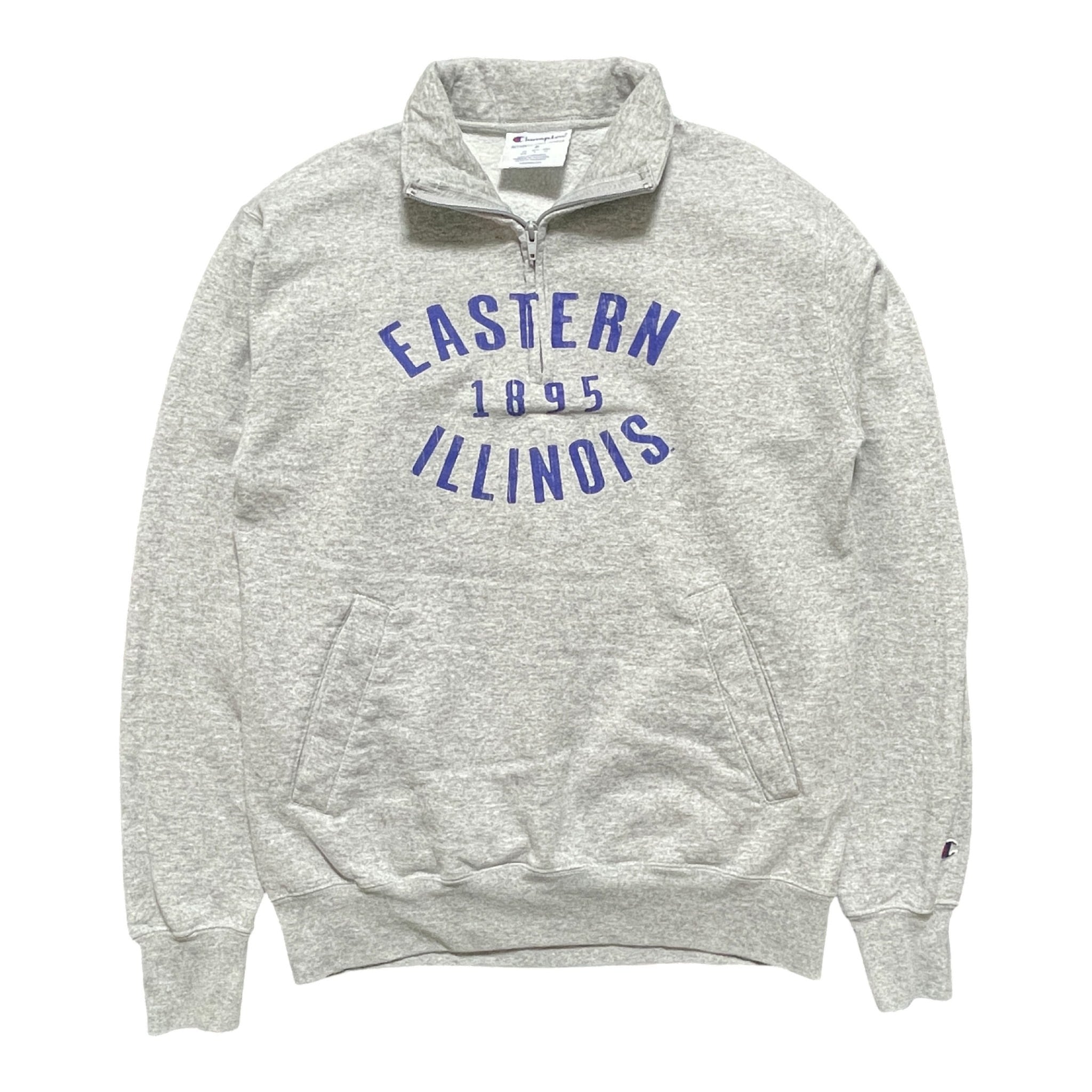 USA 古着 Champion チャンピオン イースタンイリノイ大学 カレッジ ハーフジップ スウェット トレーナー プリント メンズM グレー BD3112