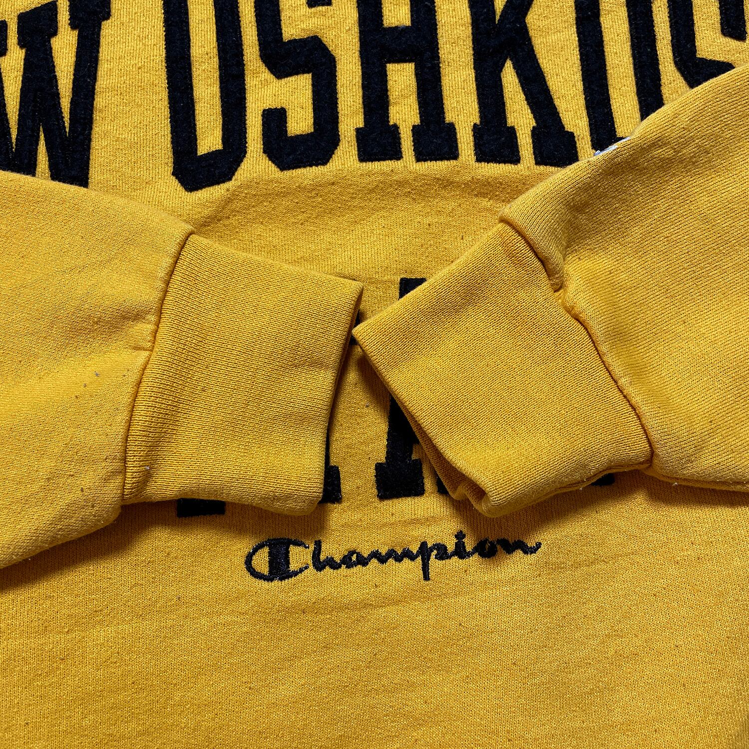 USA 古着 Champion チャンピオン ウィスコンシン大学オシュコシュ校 カレッジ クルーネック スウェット トレーナー 刺繍 イエロー メンズS BD3121