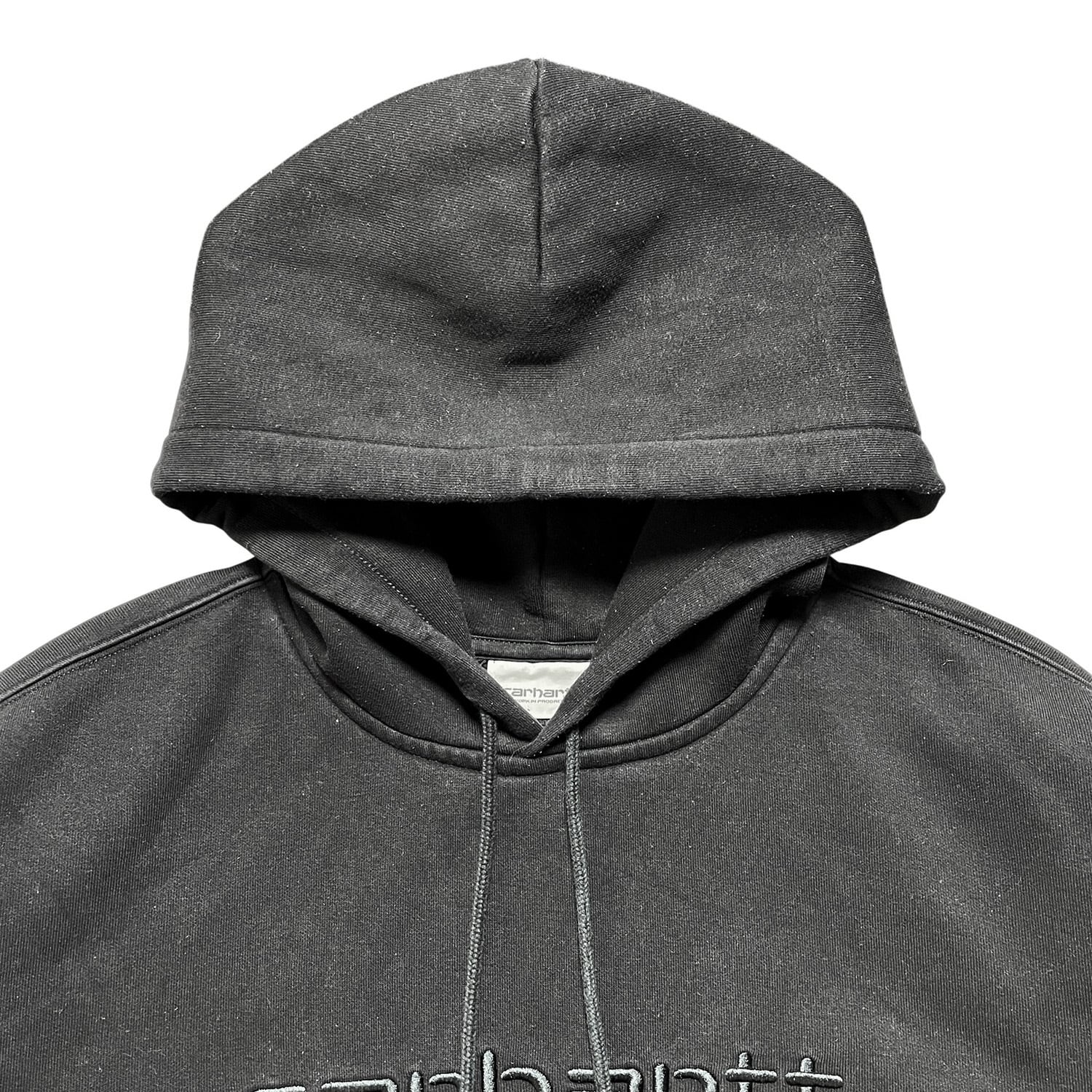 USA 古着 carhartt カーハート 刺繍 ロゴ オールブラック スウェットパーカ トレーナー ワーク メンズXL 黒色 BE0960