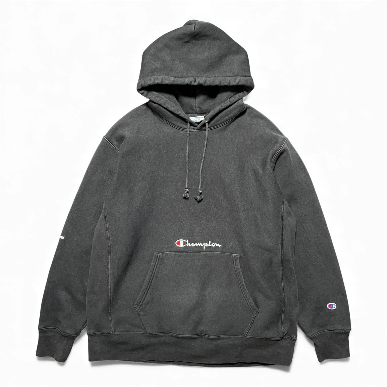 USA 古着 Champion チャンピオン リーバスウィーブ スウェットパーカ リバースパーカ 刺繍 ロゴ ブラック トレーナー メンズXL BE0961