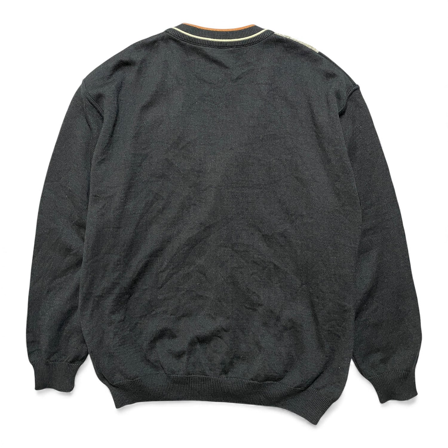 USA 古着 ドイツ BABISTA ヴィンテージ コットン/アクリル ジオメトリック ブラック カーディガン メンズL相当 BH0417