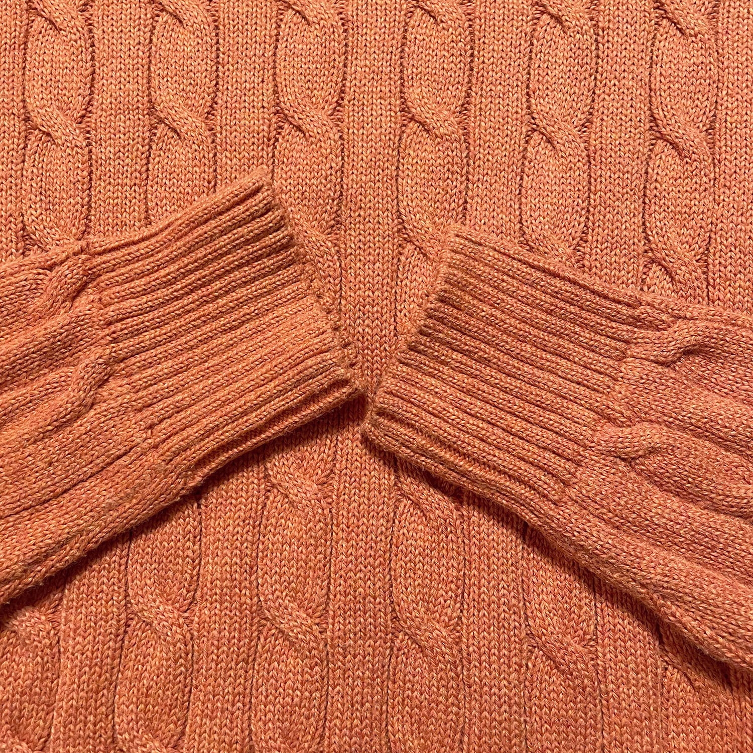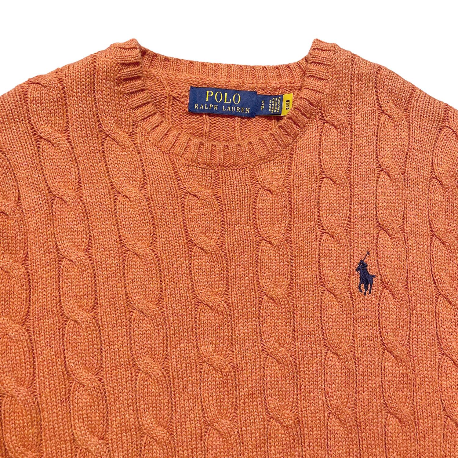 USA 古着 POLO RALPH LAUREN ポロ ラルフローレン コットンニット クルーネック ケーブル セーター オレンジ メンズS BJ1030