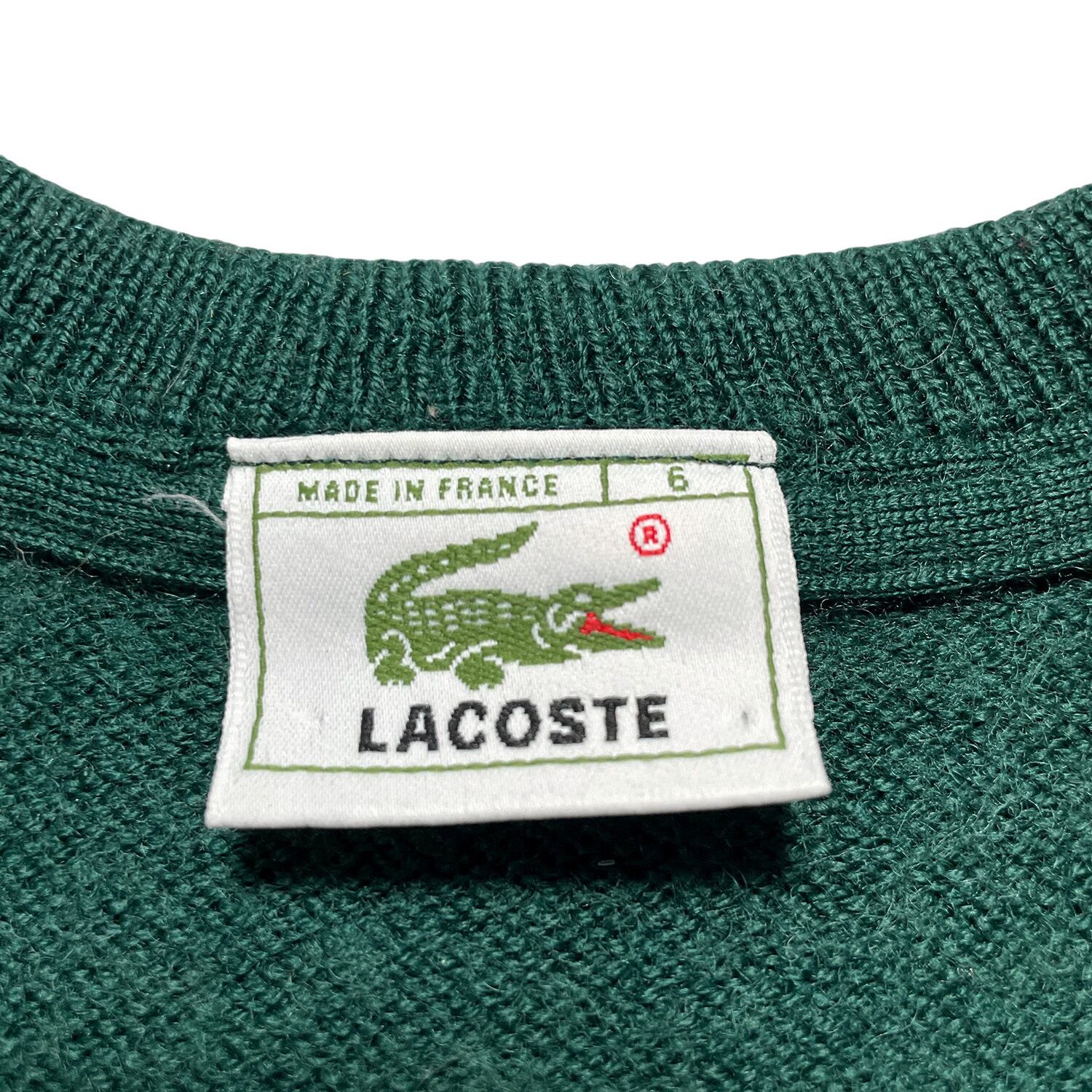 USA 古着 フランス製 LACOSTE ヴィンテージ フレンチ ラコステ ウール/アクリル Vネック グリーン セーター サイズ6 緑色 BJ1031