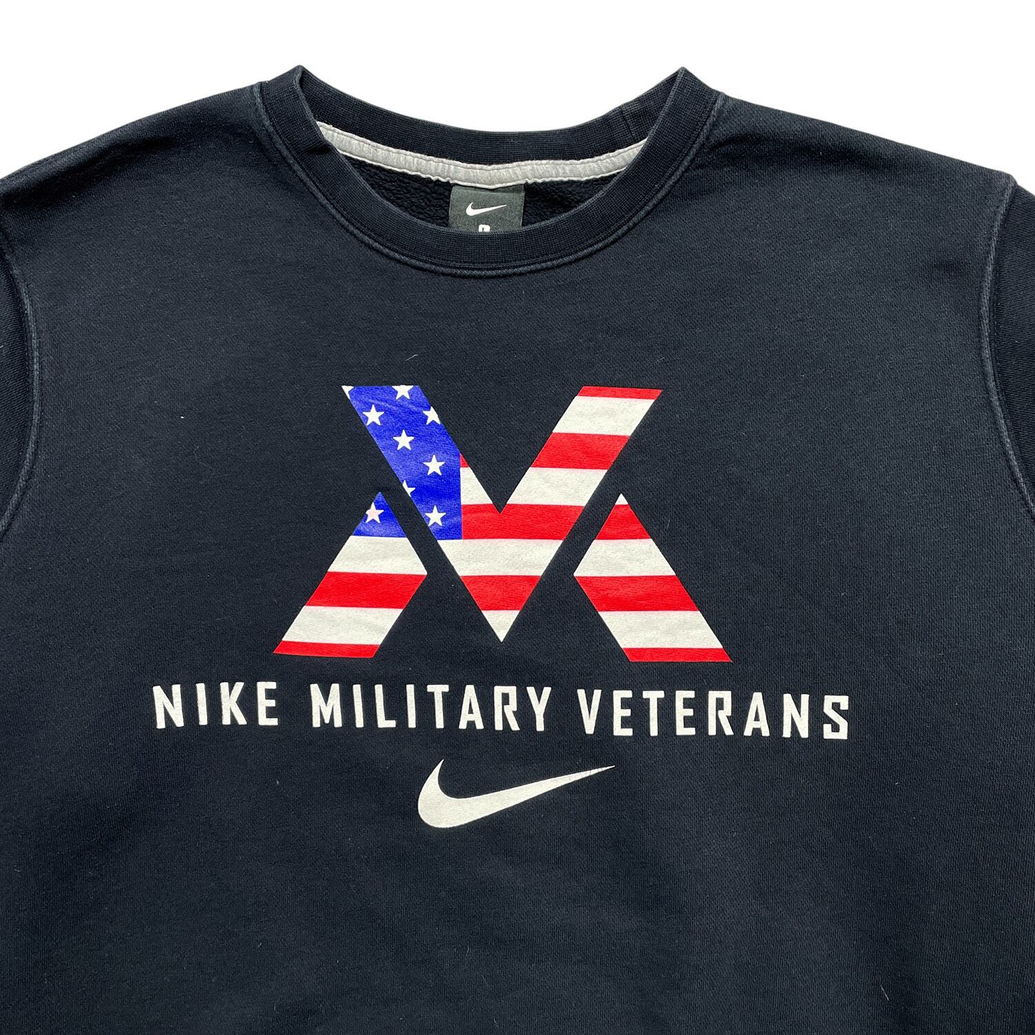 USA 古着 NIKE ナイキ 退役軍人 クルーネック スウェット トレーナー プリント ブラック 黒 メンズL BD3125