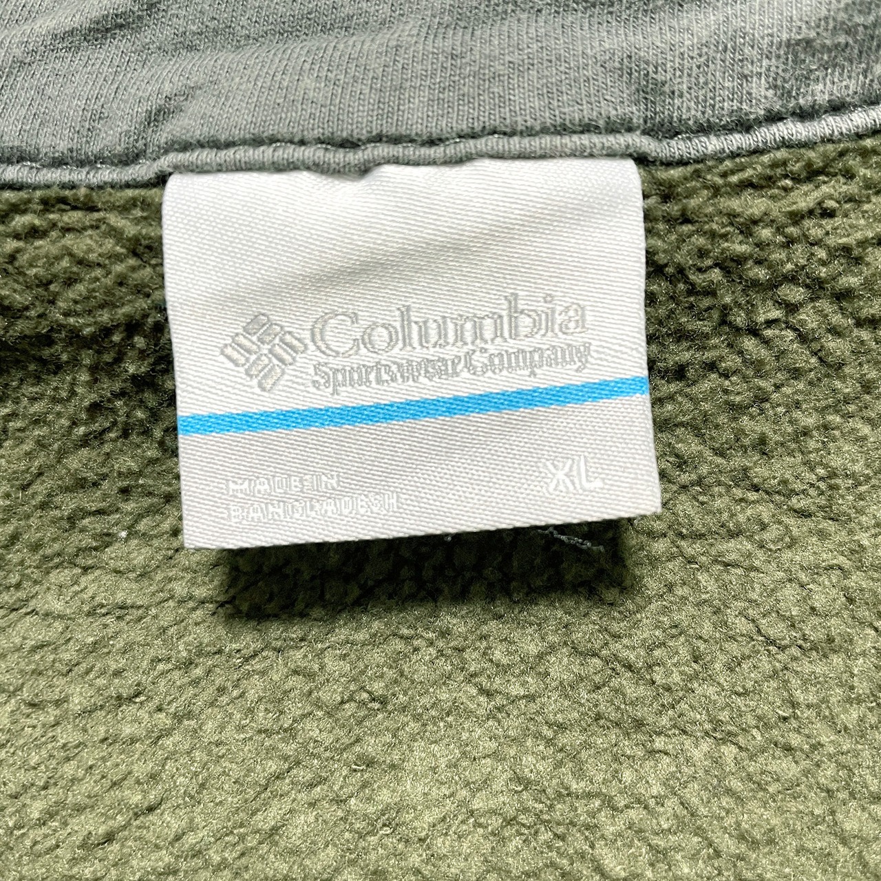 USA 古着 Columbia コロンビア ハーフジップ スウェット トレーナー 刺繍 ロゴ ワンポイント カーキ メンズXL アウトドア BD3127