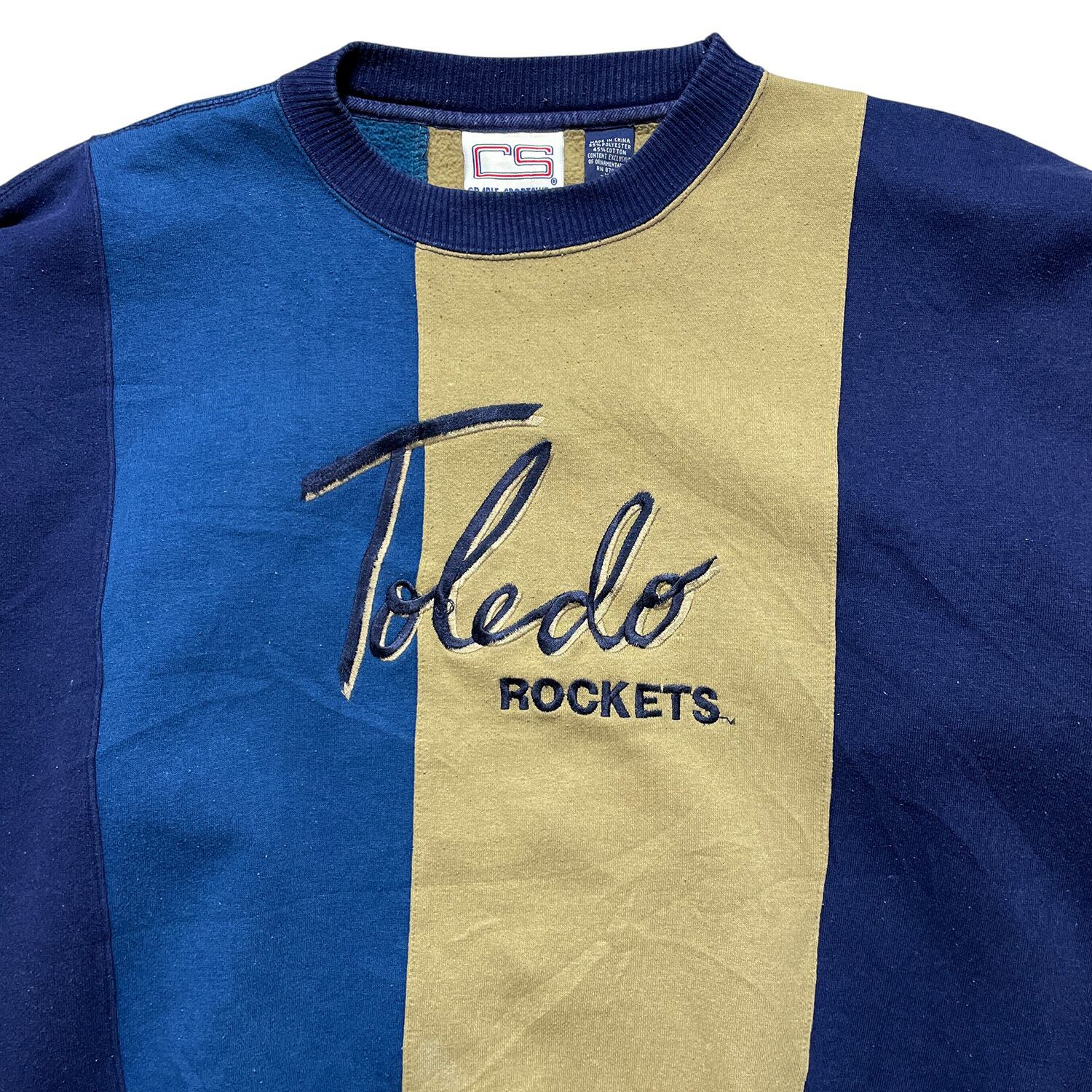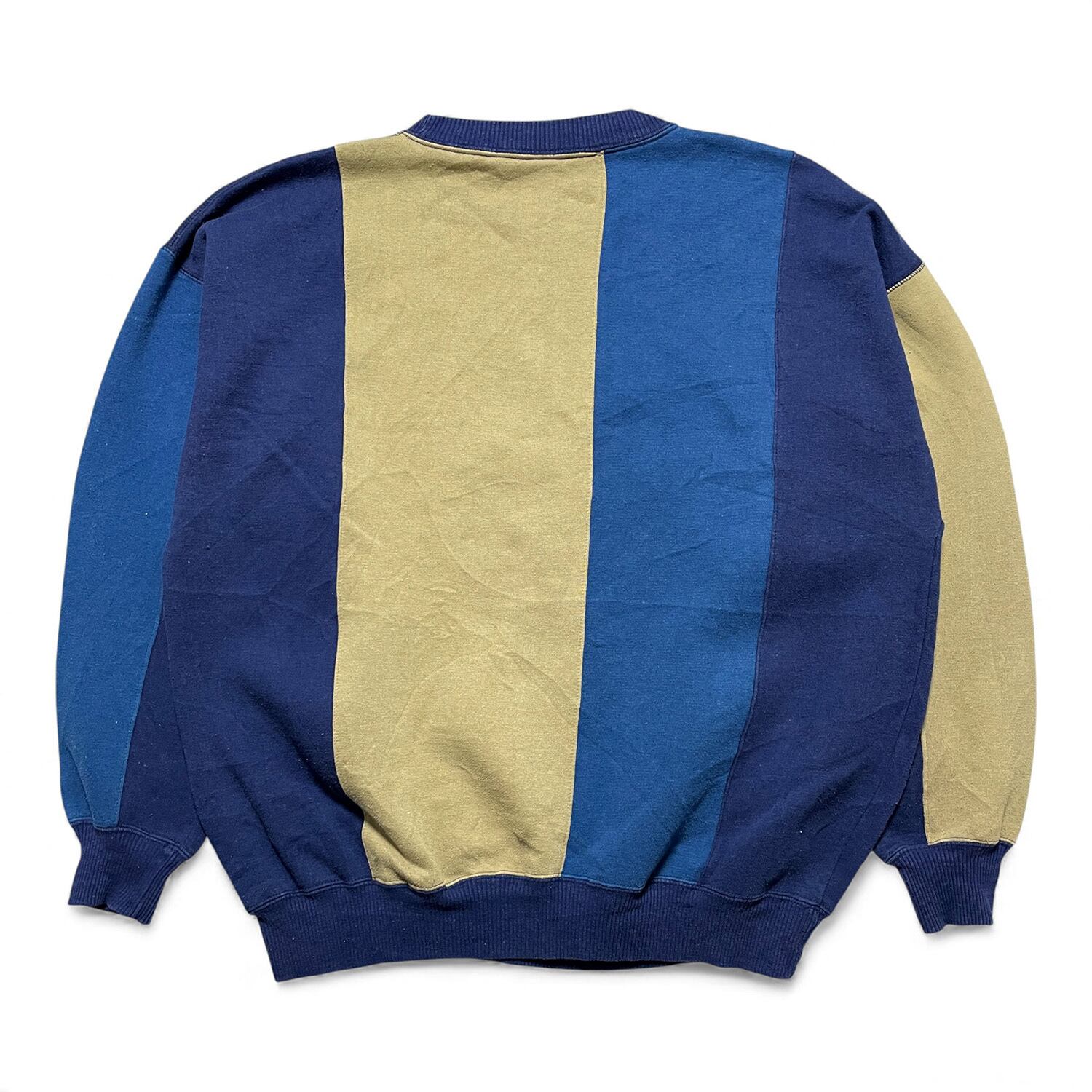USA 古着 切替 ボーダー クルーネック スウェット トレーナー メンズXL ネイビー ベージュ BD3129