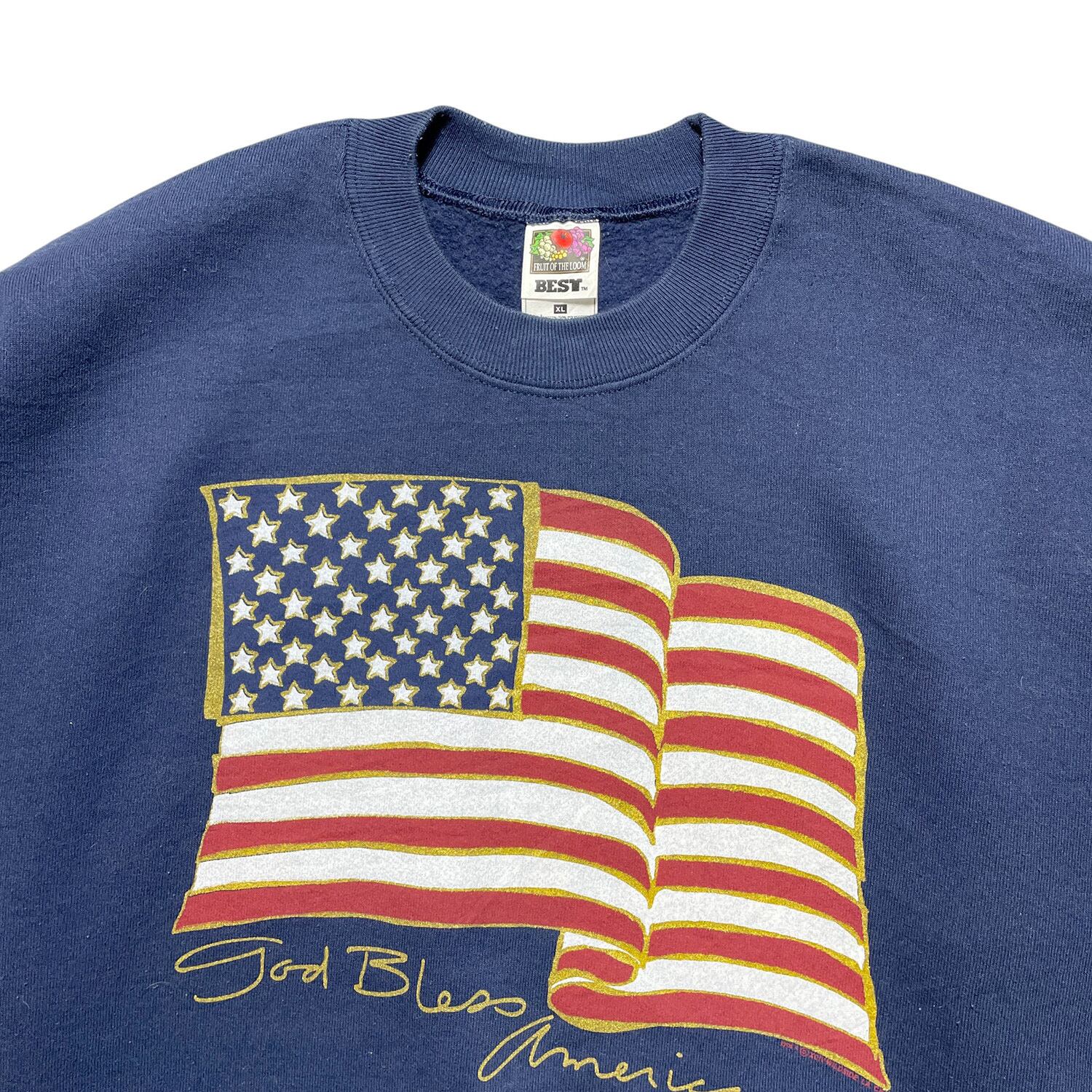 USA 古着 フルーツオブザルーム 星条旗 クルーネック スウェット トレーナー プリント ネイビー メンズXL BD3131