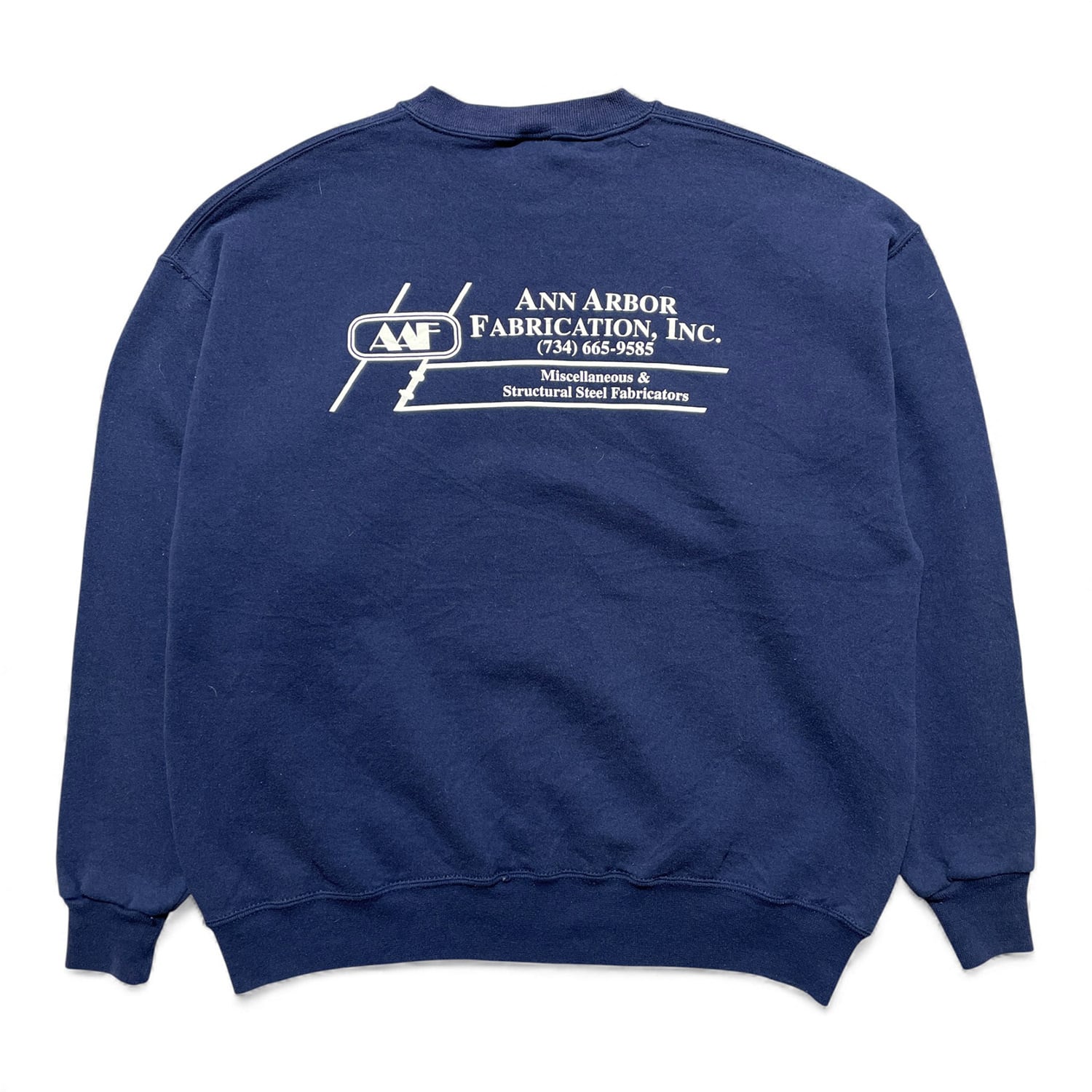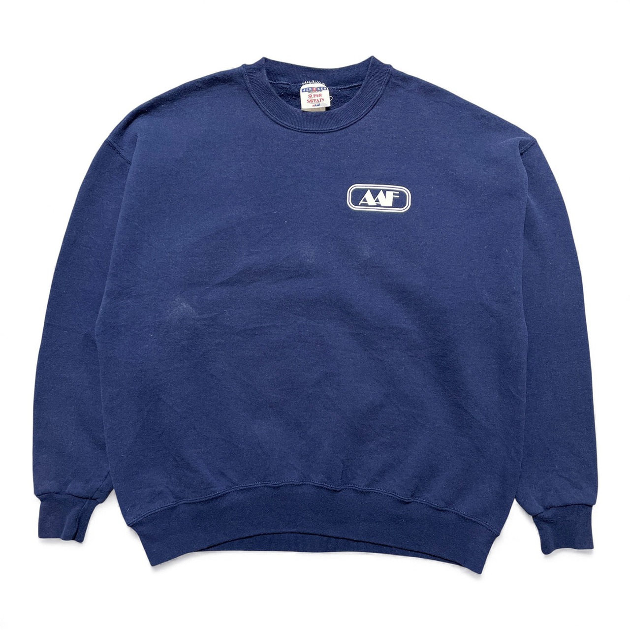 USA 古着 企業系 クルーネック スウェット トレーナー プリント ネイビー 紺色 メンズXL BD3132