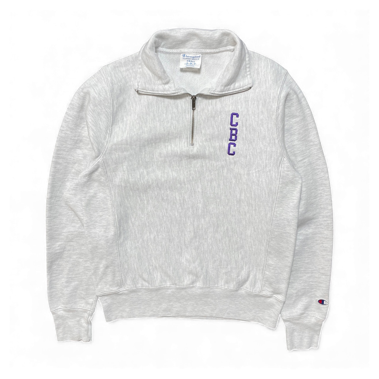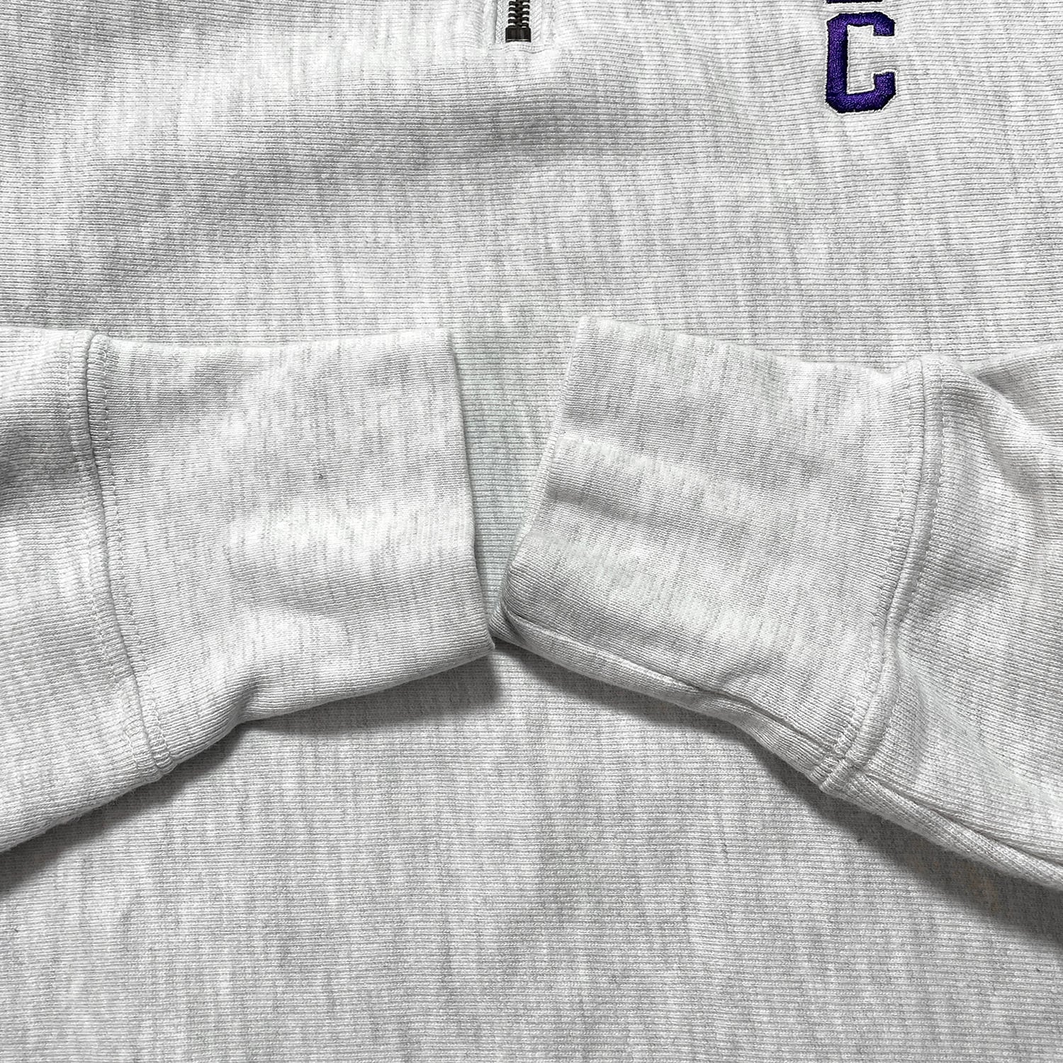 USA 古着 Champion チャンピオン リバースウィーブ ハーフジップ スウェット トレーナー 刺繍 ロゴ グレー メンズS BD3065