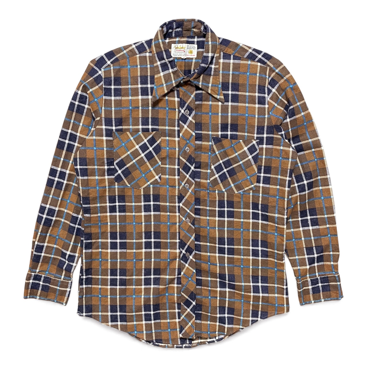 USA 古着 70S Cranbrook ヴィンテージ コットン プリントフランネル ネルシャツ チェック柄 長袖シャツ メンズM BG1186