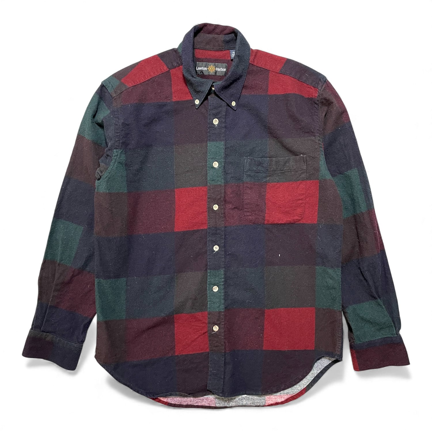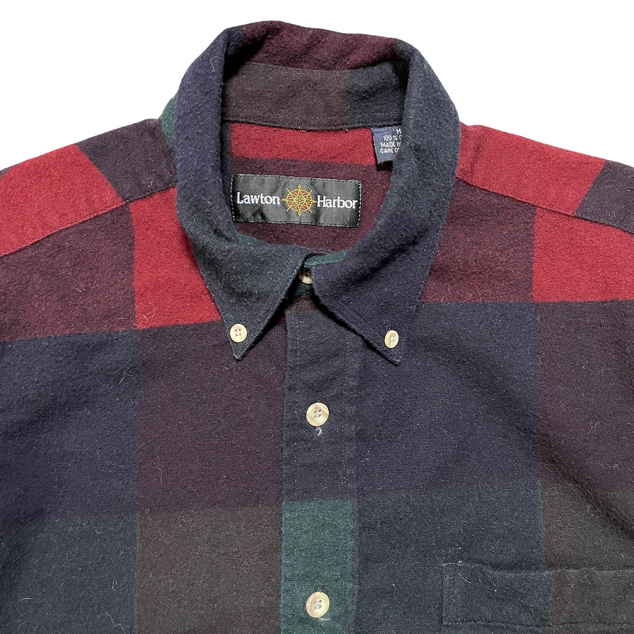 USA 古着 Lawton Harbor ヴィンテージ シャモアクロス コットン ブロックチェック 長袖シャツ BDシャツ メンズM BG1187